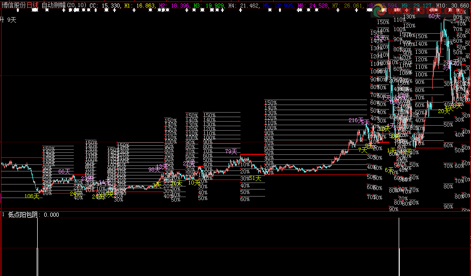 (领带低点阳包阴(大智慧通达信) 选股指标副图 源码 贴图 )