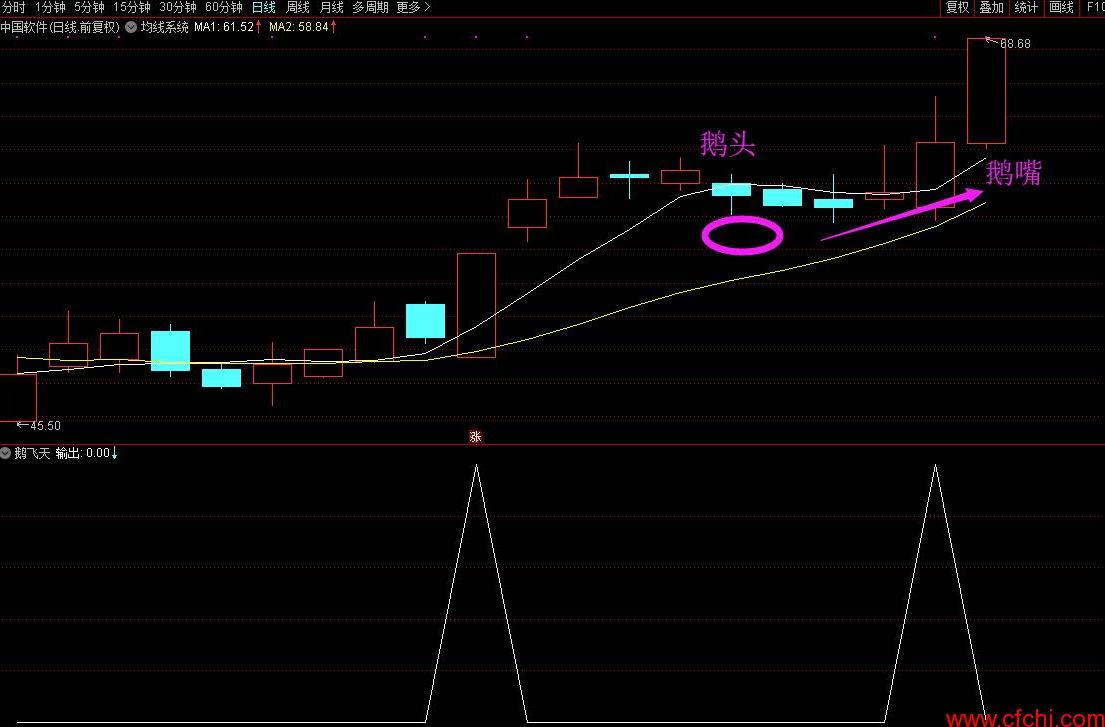 今天再分享一个自创形态和均线结合的鹅飞天指标,形态上类似鹅向上飞天,形态上走出鹅头隆起较高(5日均线上翘),鹅嘴通气(5日和10日均线不粘合)比较好,可结合其他指标使用效果会更好,本指标公式为通达信和大智慧软件通用,副图/选股指标源码。本指标后续有时间还会做进一步优化。指标仅是个人对战法思路的一种表达,思路是无法完全通过指标的编写来完美体现,请尊重原创者的辛苦付出,喜欢的就用,不喜欢的请绕道!