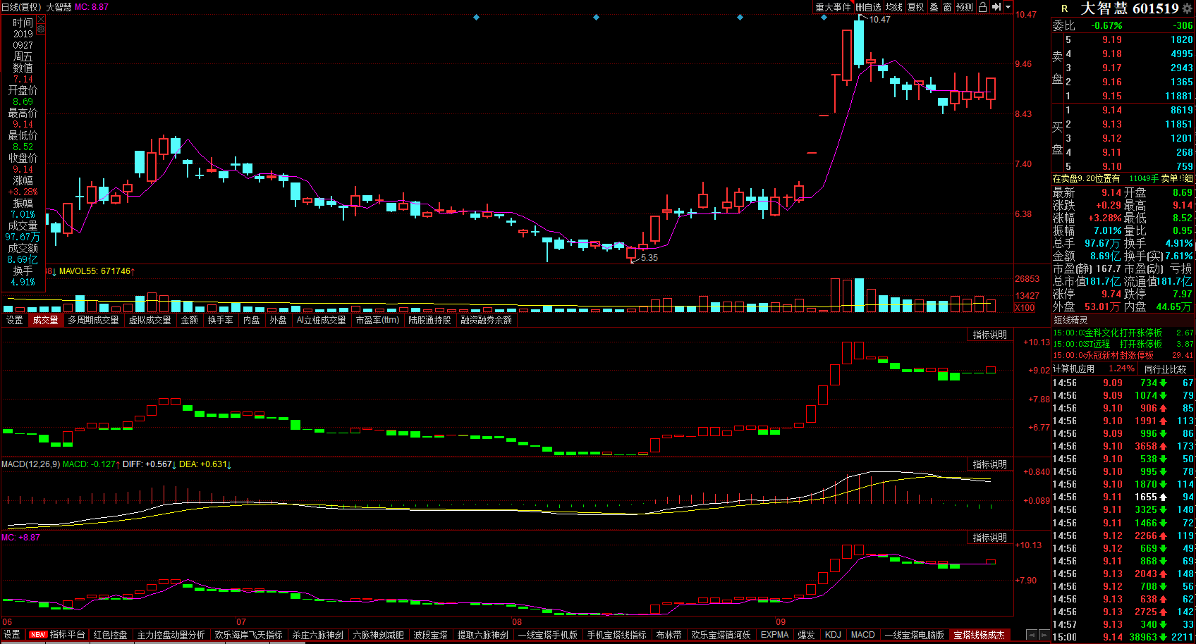 优化一线宝塔线 通达信/大智慧 选股指标 副图 源码 贴图