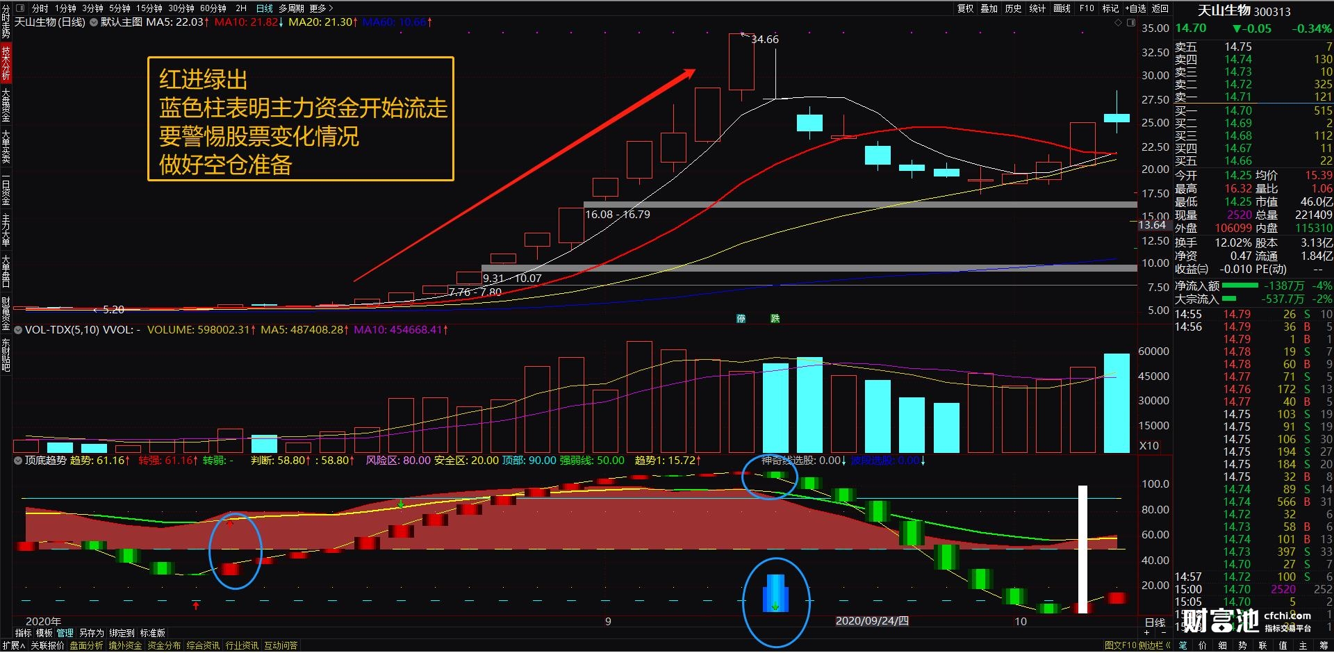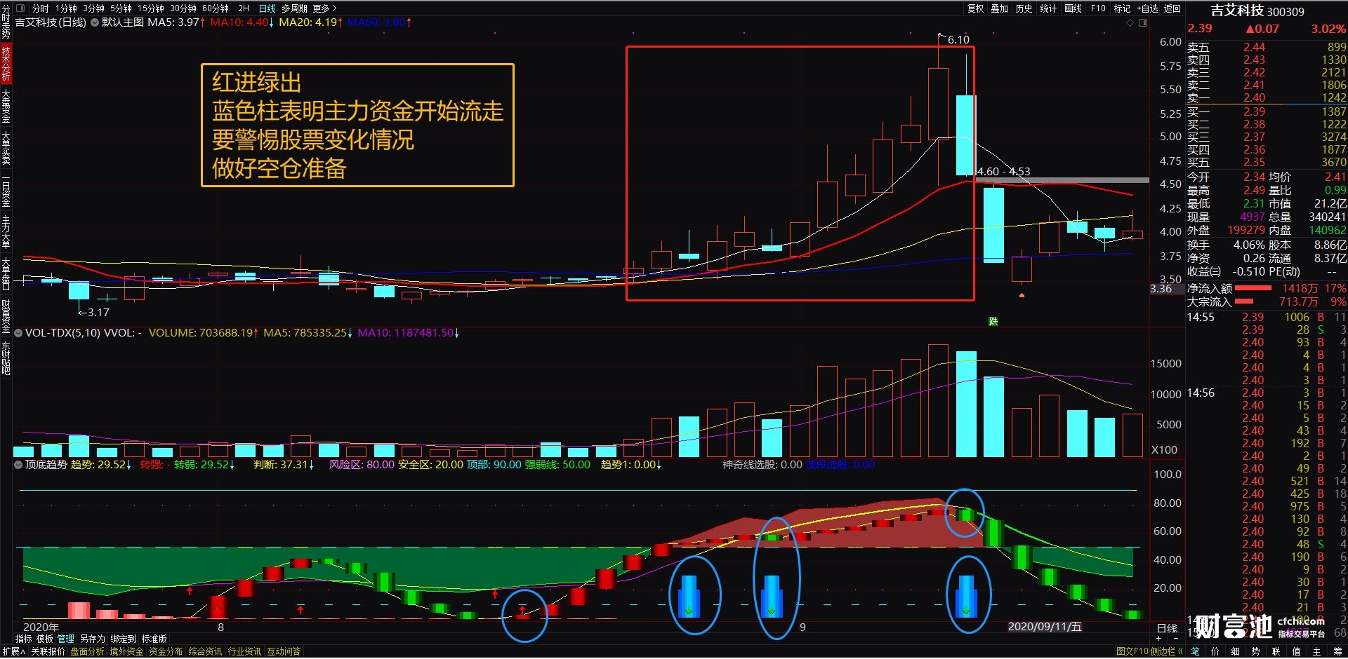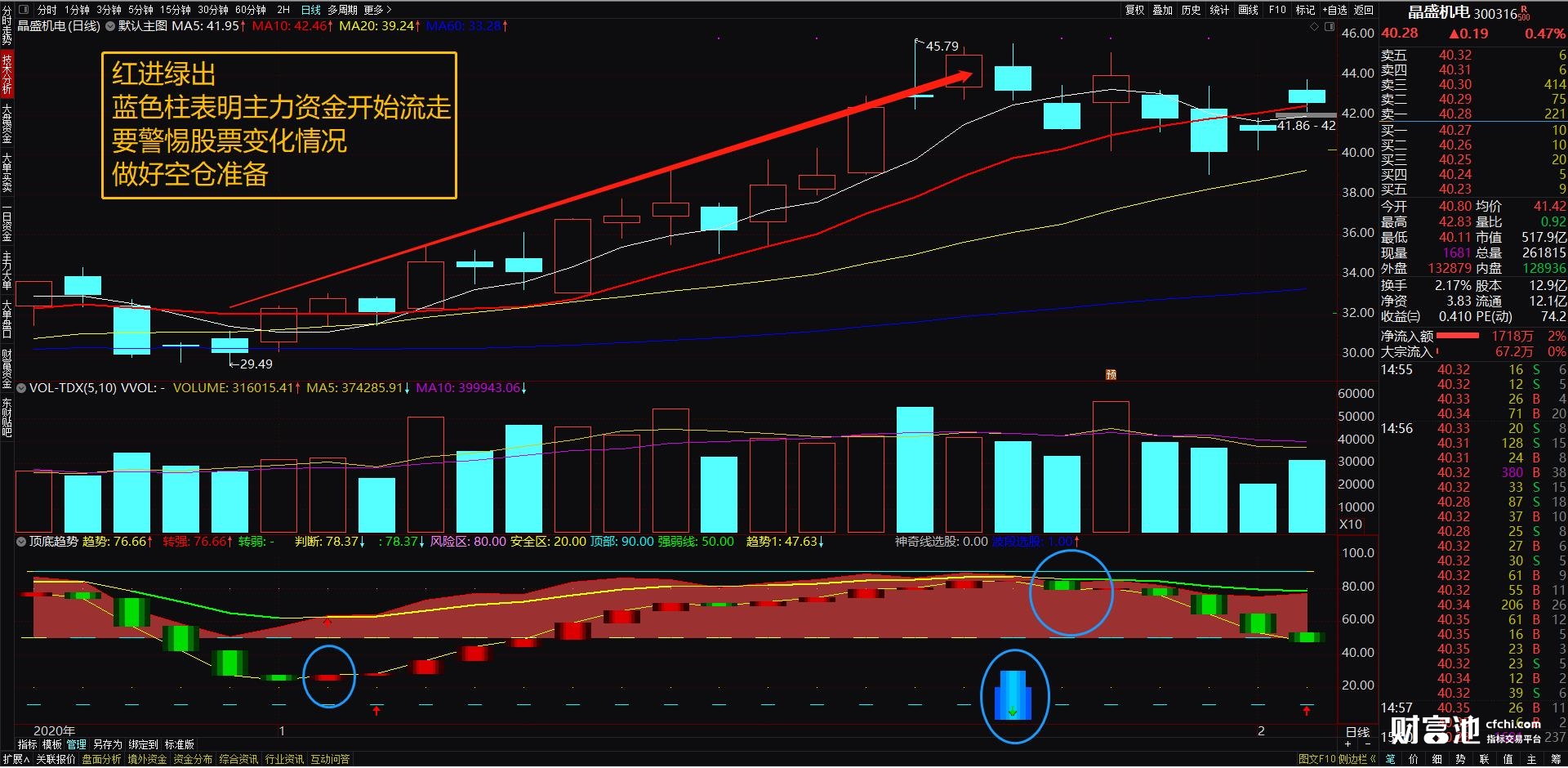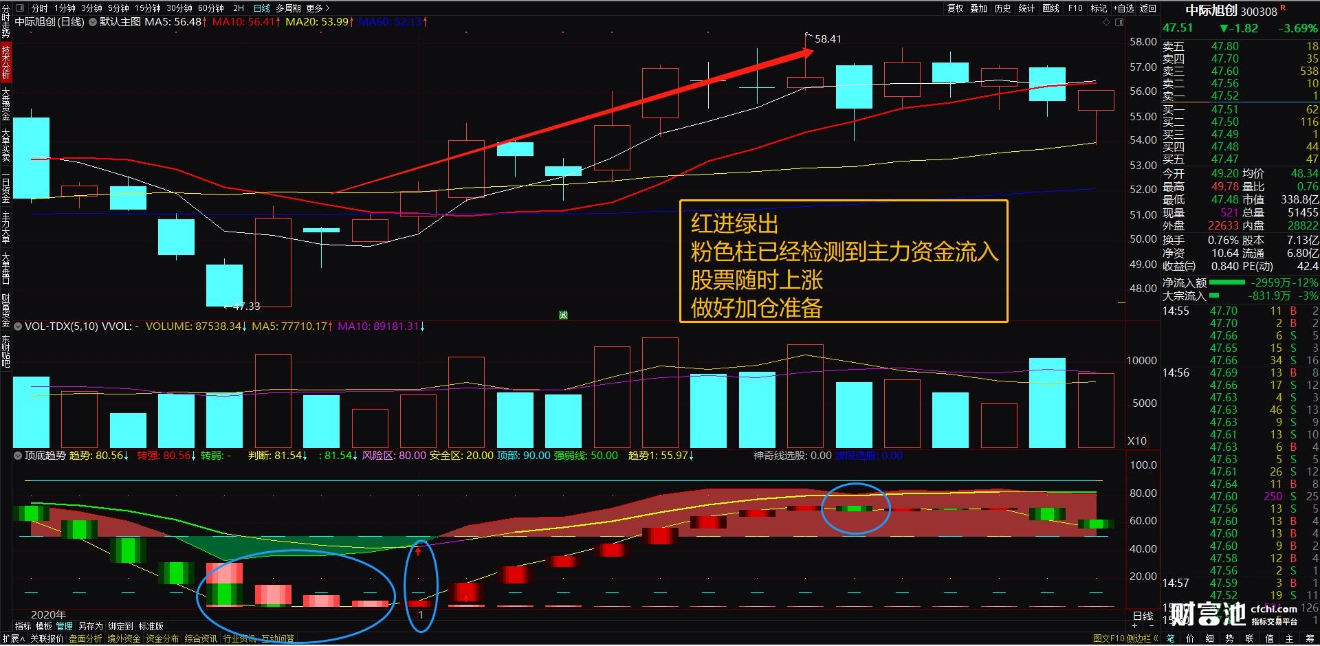 红柱子买入,绿柱子卖出。粉柱子说明有主力资金入驻,要关注股票走势,蓝柱子说明主力资金正在清仓,要开始警惕股票变化情况。