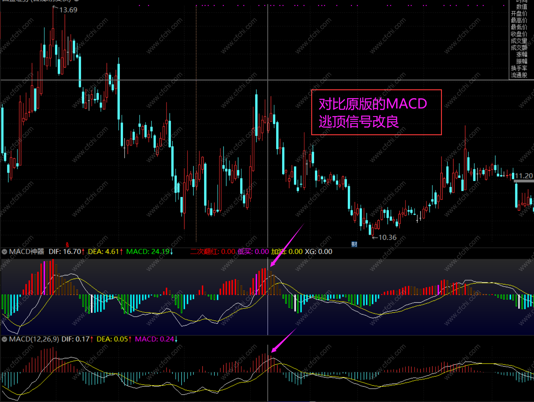 相比原版的MACD进行了多信号改良,提前预警逃顶,提前预警触底反弹,抓牛信号等等,实战意义强,可以下载研究!