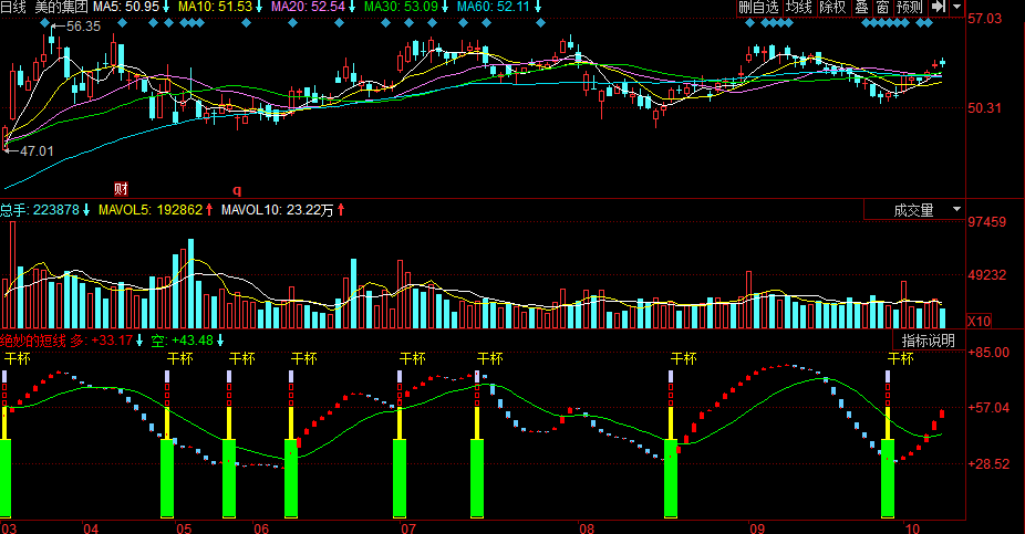 (绝妙的短线 同花顺 选股指标 副图 源码 贴图 (K线图))