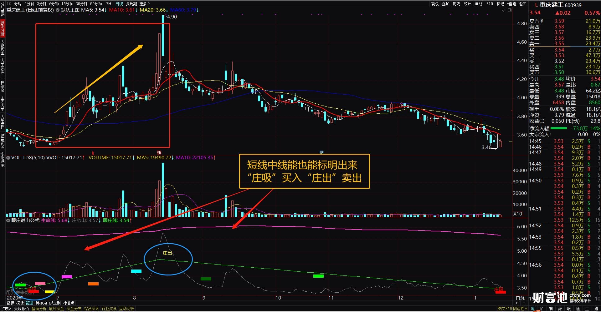 高抛低吸跟庄进出指标 通达信副图公式 源码 不加密