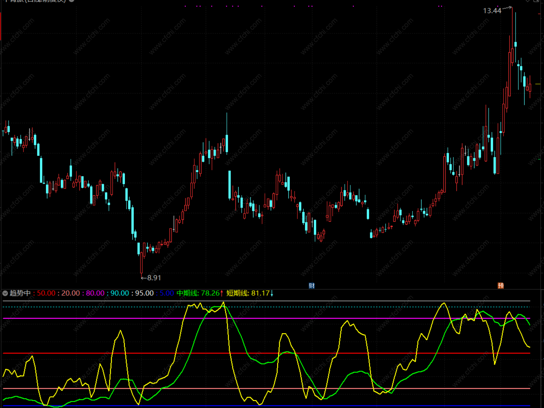 财富池指标公式网(www.cfchi.com)提醒您:指标公式是通过数学逻辑角度编写而来,仅是股票分析环节中的一个辅助工具,对股票选股效率和分析便捷上起到一定的作用,股市是具有不确定性和不可预测性的,请正常对待和使用指标公式!