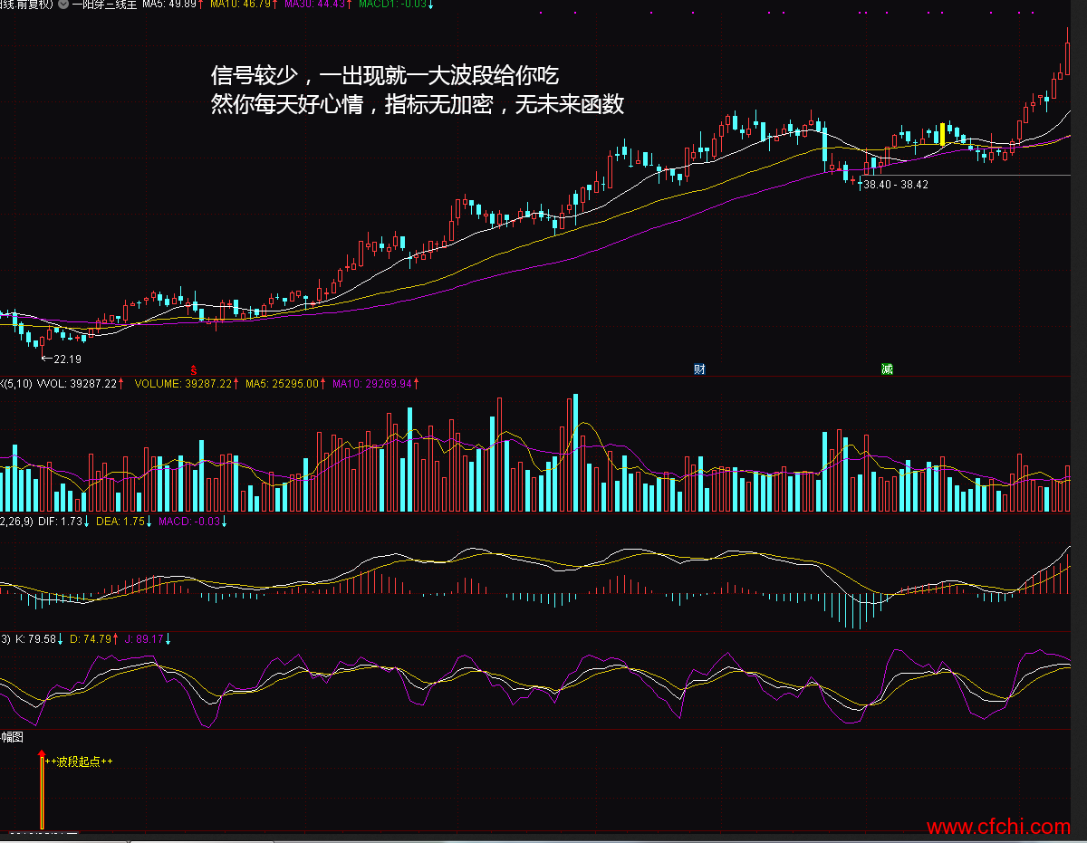 指标信号一出,盘中即是买点。懂编程的看到指标编写虽然很简单,可是往往越简单的越真实,就如有人用MACD都可以出神入化。但有波段起涨点指标历史信号可靠,任意一只股票可复察。