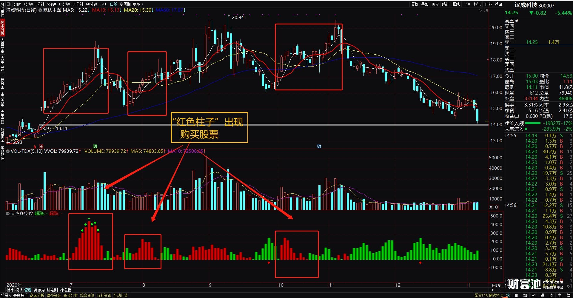 “红色柱子”表明这段期间股价上涨,此时购买利润翻倍;“绿色柱子”表明这段期间股价整体呈下滑趋势,不宜购买股票。