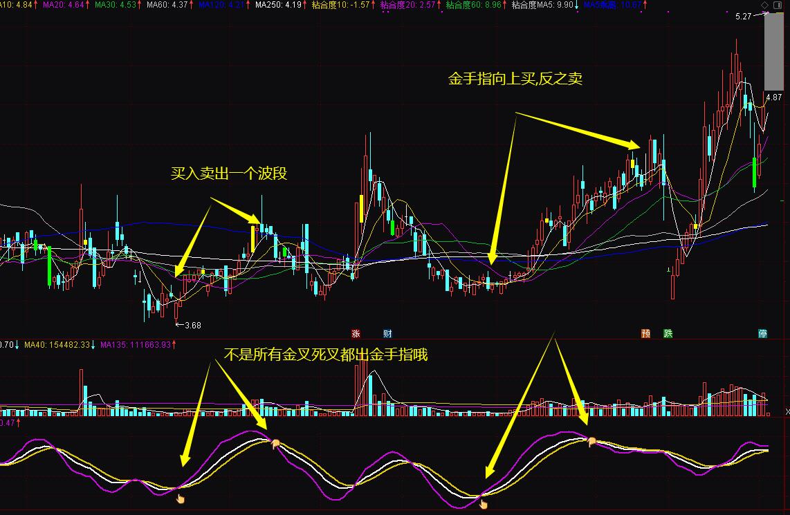 指标简单的操作:金手指向上买入,金手指向下卖出。