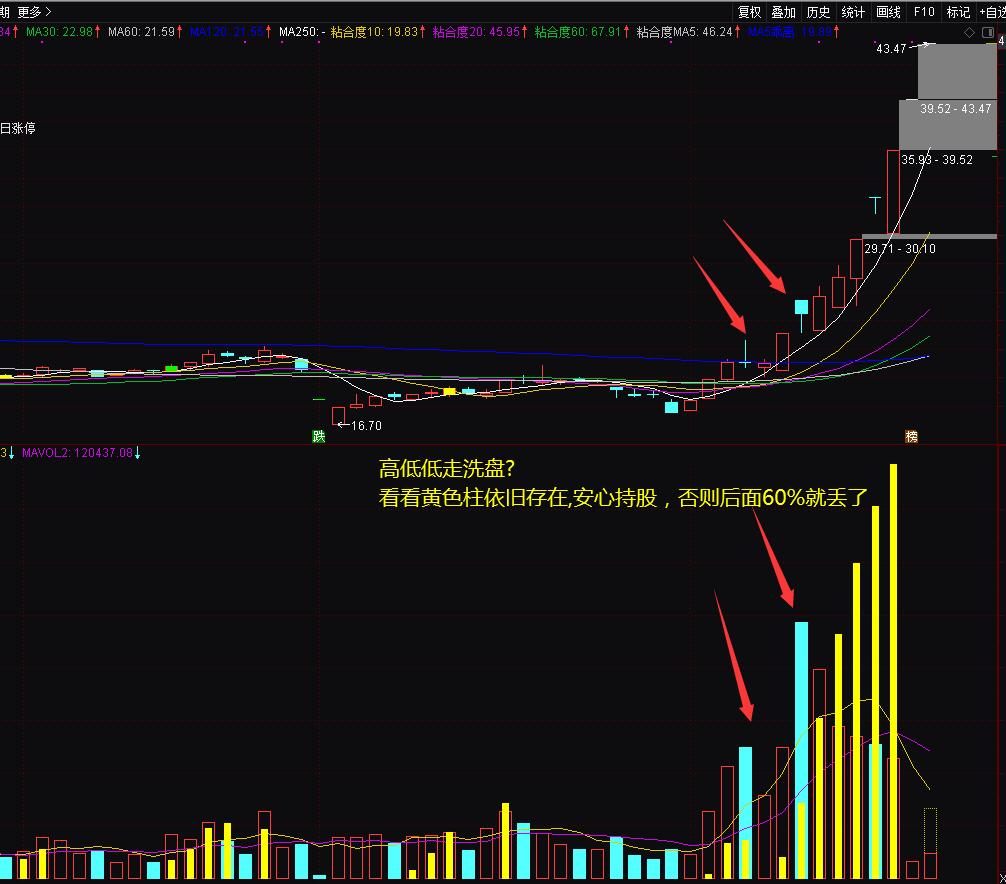 驰骋股海多年,哪个没有骑过黑马,大牛股?有多少人被震出来的?结过吃的涨幅不到整体波段的30%就跑了,下面这个案例大家遇到过吧?如果用主力量能成交量买入点和持股信号指标辅助参考,让利润多奔跑一会,后面是不是让你更加的有成就感。找牛不容易骑牛跟不容易。