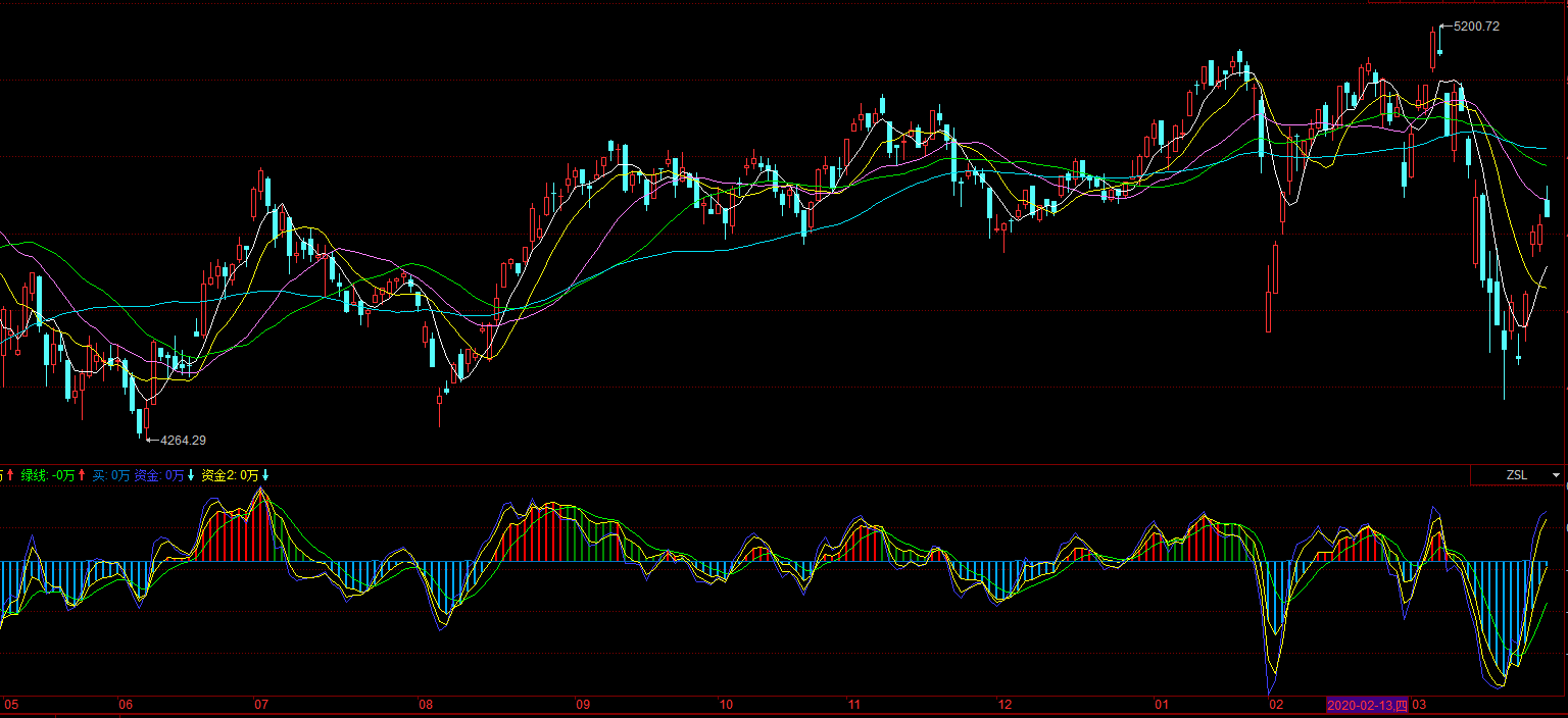 主升浪出现中期,处于移动状态下的平均线呈现出齐头并进的状态,不过大盘调整时,对平均线设定的参考值不一样,因此这个时要借助一些炒股软件,具体分析平均吸纳的情况,及时发现平均下的变化,从而抓住机会,同时也避免不被庄家蒙蔽。另外,主升浪行情出现后,MACD指标也会出现变化,一般都向上的趋势,且上升趋势非常明显,与此同时,DIFF则刚好相反,和DEA处于同一水平,两条线基本重合。