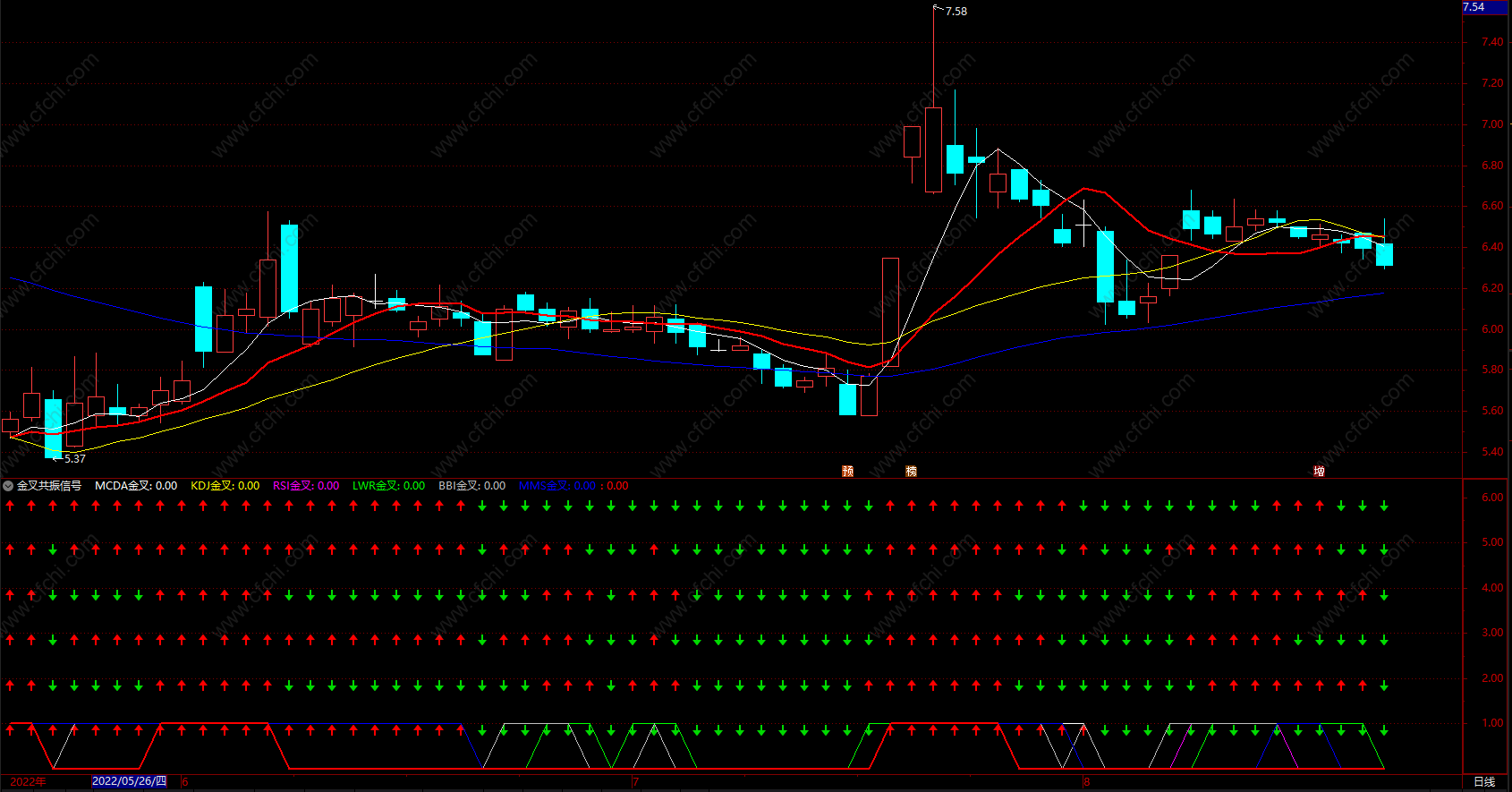 (通达信金叉共振信号(指标 副图 通达信 贴图)短线趋势箭头指标公式)