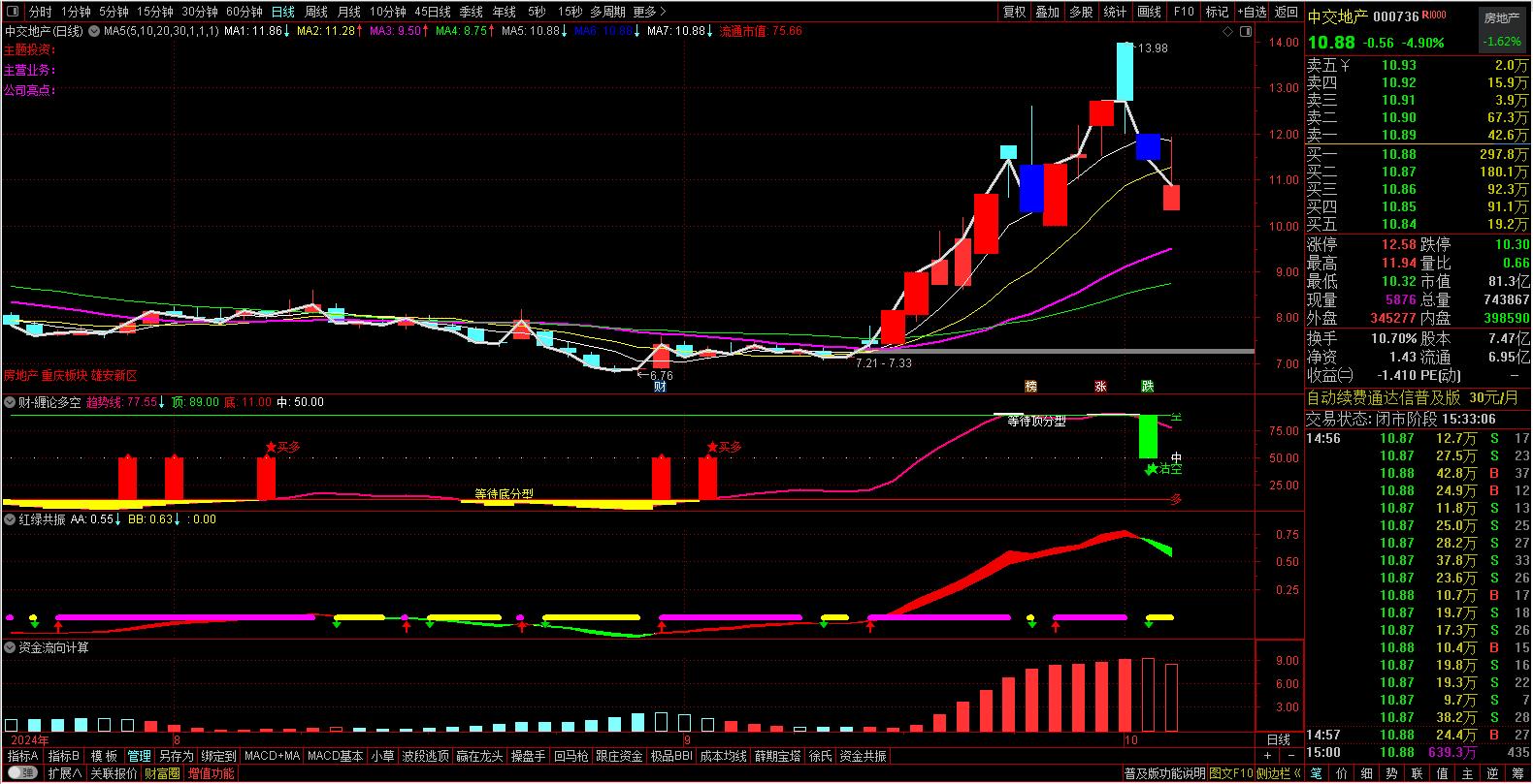 通达信缠论多空(无未来 源码 副图 通达信 贴图)