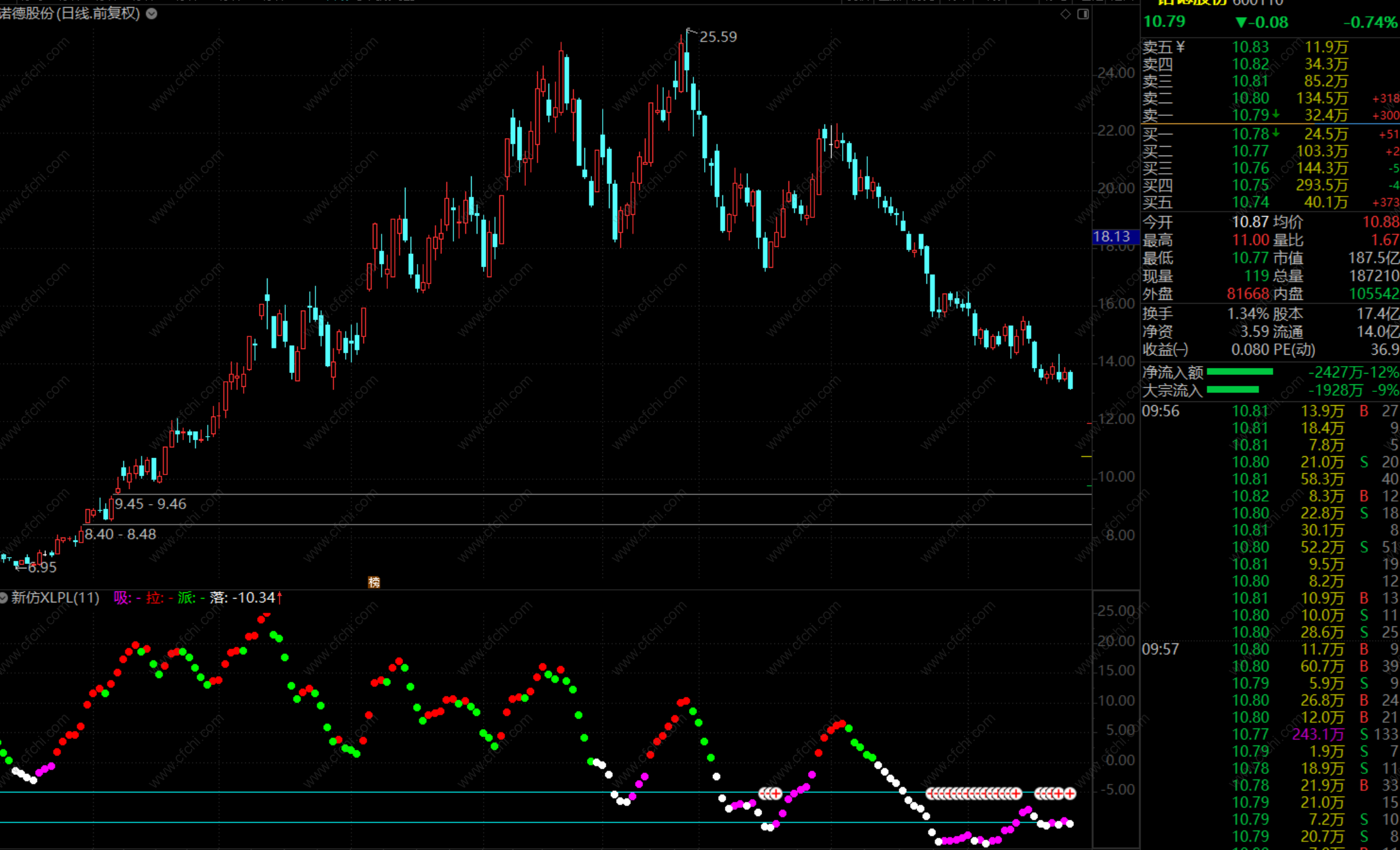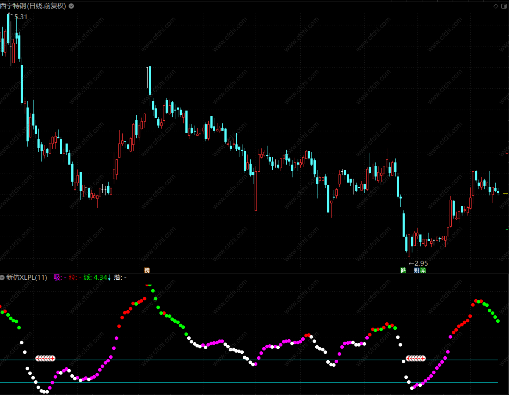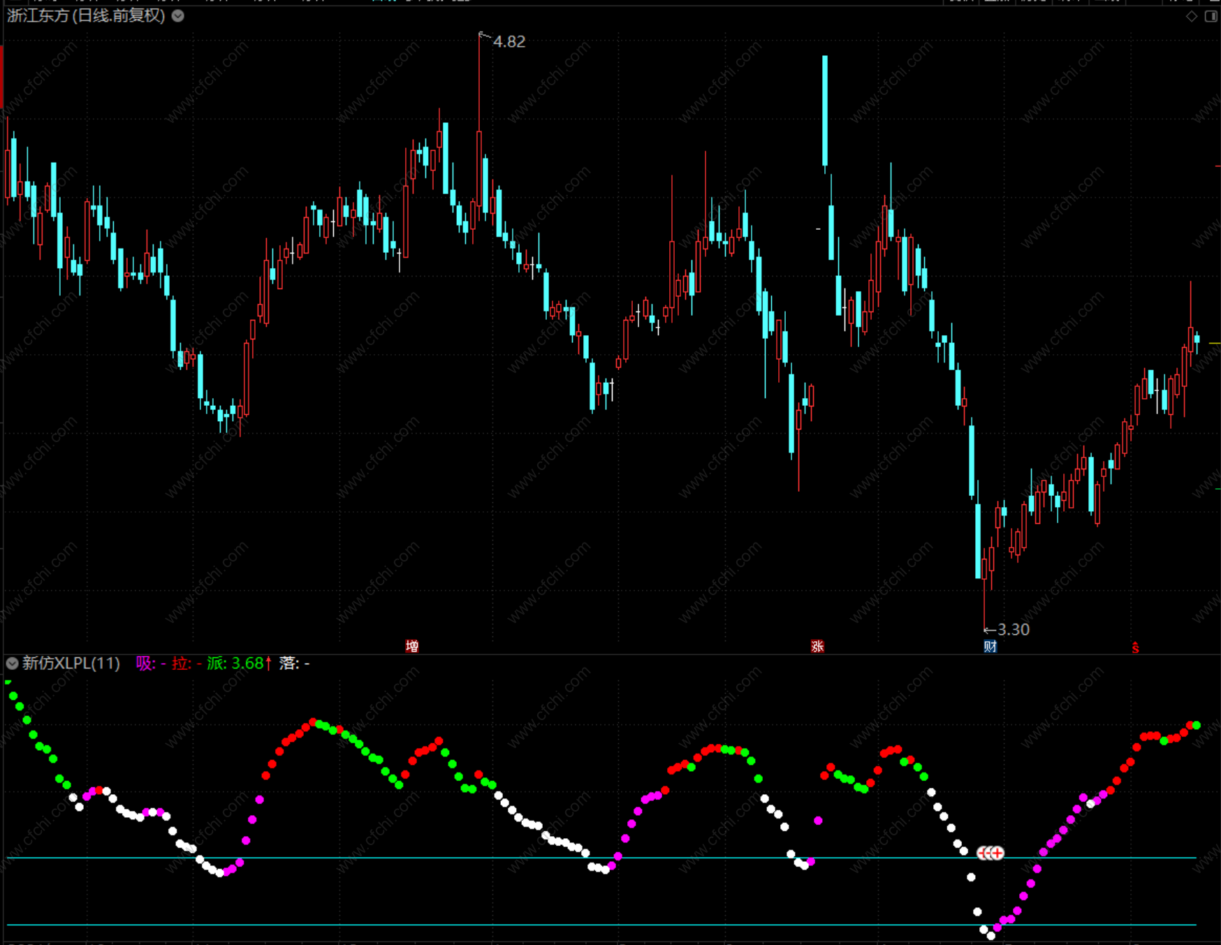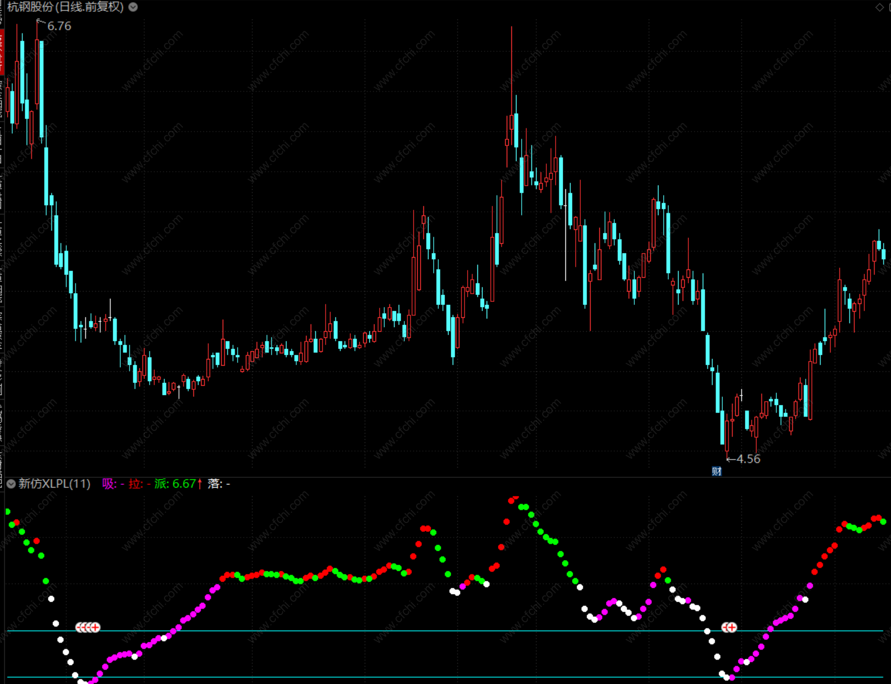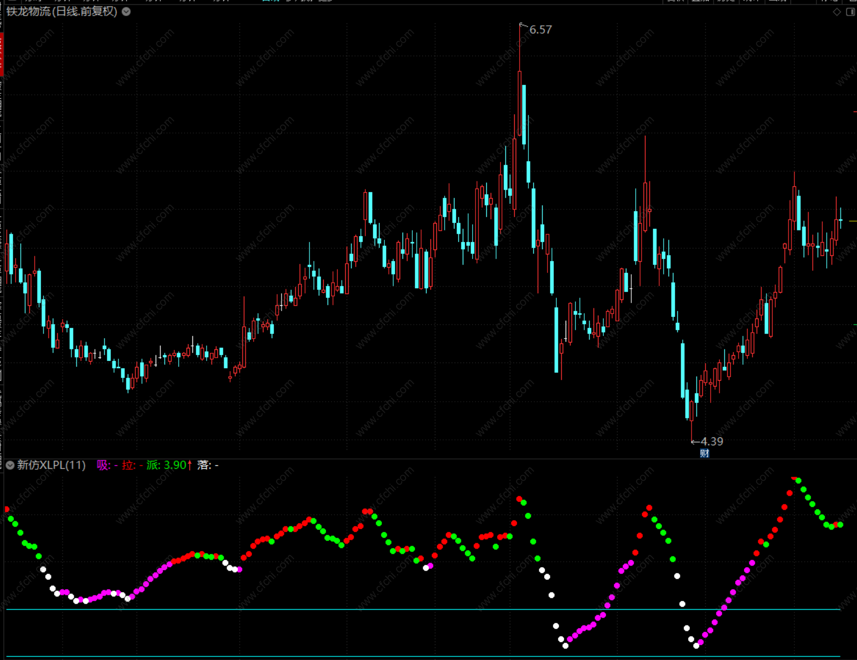以前曾仿制过通达信的吸拉派落,但是与官版有稍微的差异,后来有股友告诉我官版的指标未来函数,今天把新制作的仿制指标分享给股友。
