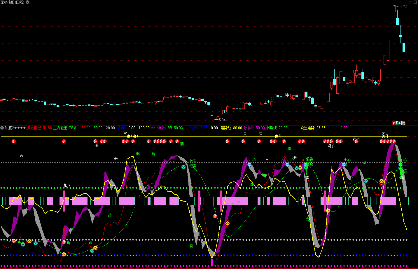自用双钻王进化版,真正的启动点捉妖师(通达信 副图 源码 无未来 无加密)