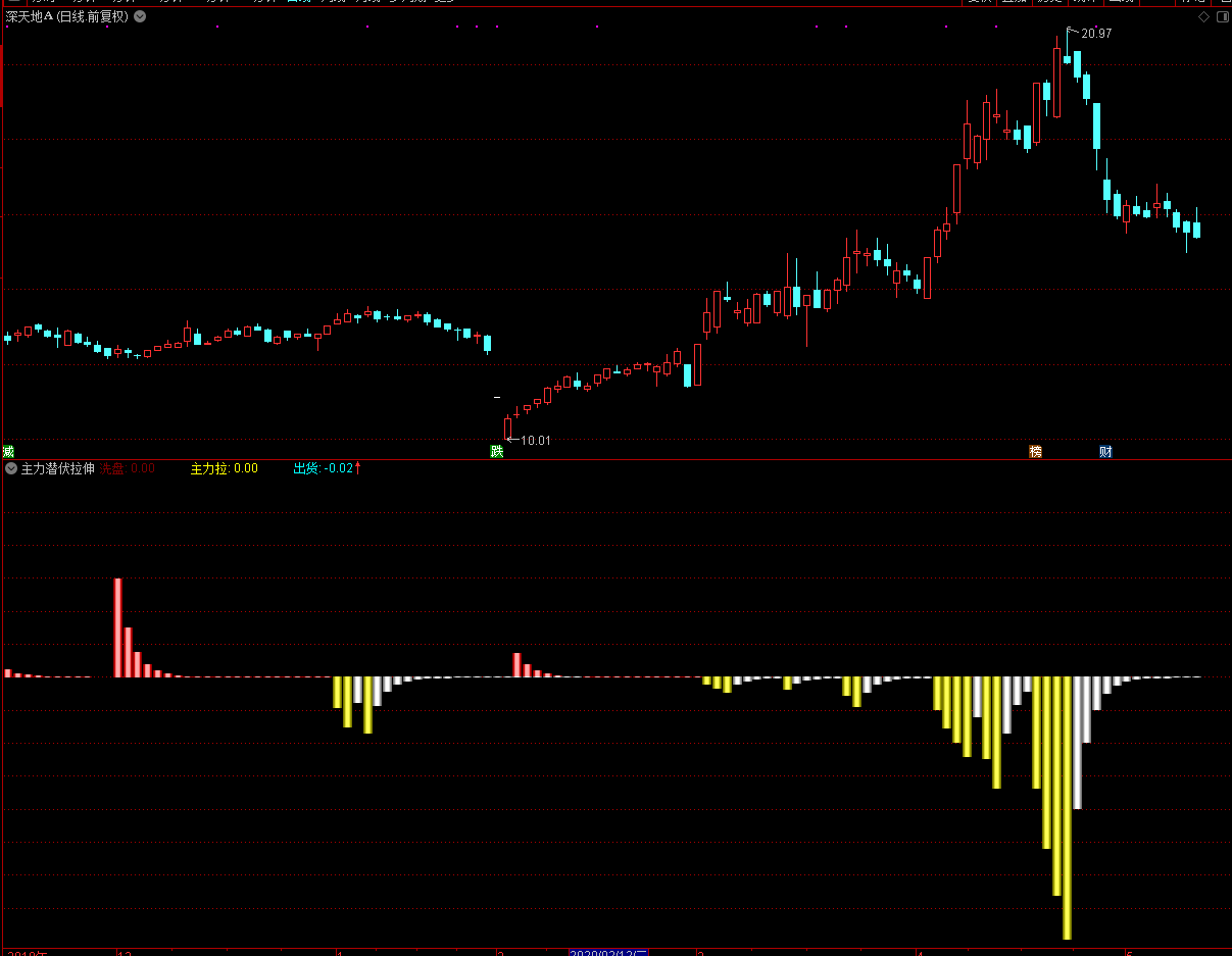 主力建仓洗盘拉伸,建仓是个偷偷干活的事情,不能太过张扬,通达信主力潜伏拉伸指标公式(幅图,源码)