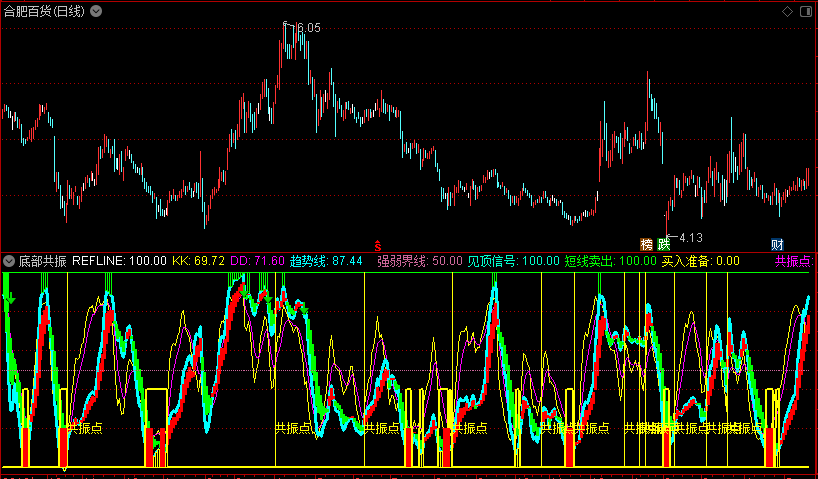 见顶信号趋势线买入准备数据线(通达信副图)