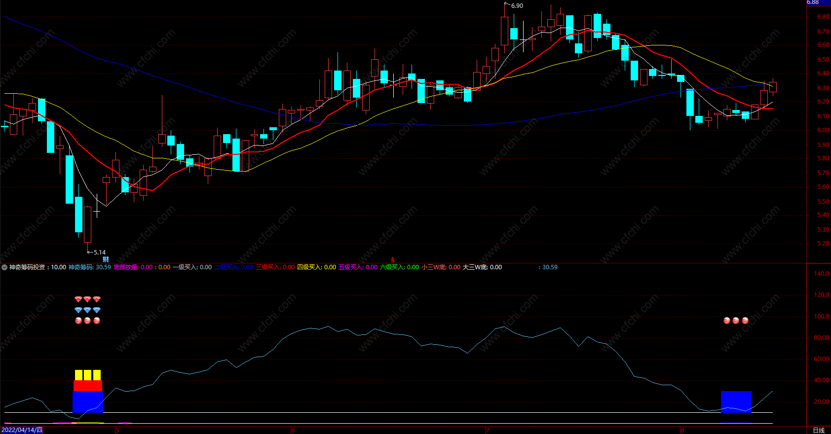 【财富池_量能分析】红粉黄绿四色绝版官方原创核心指,还原个股真实走势(量能判断)