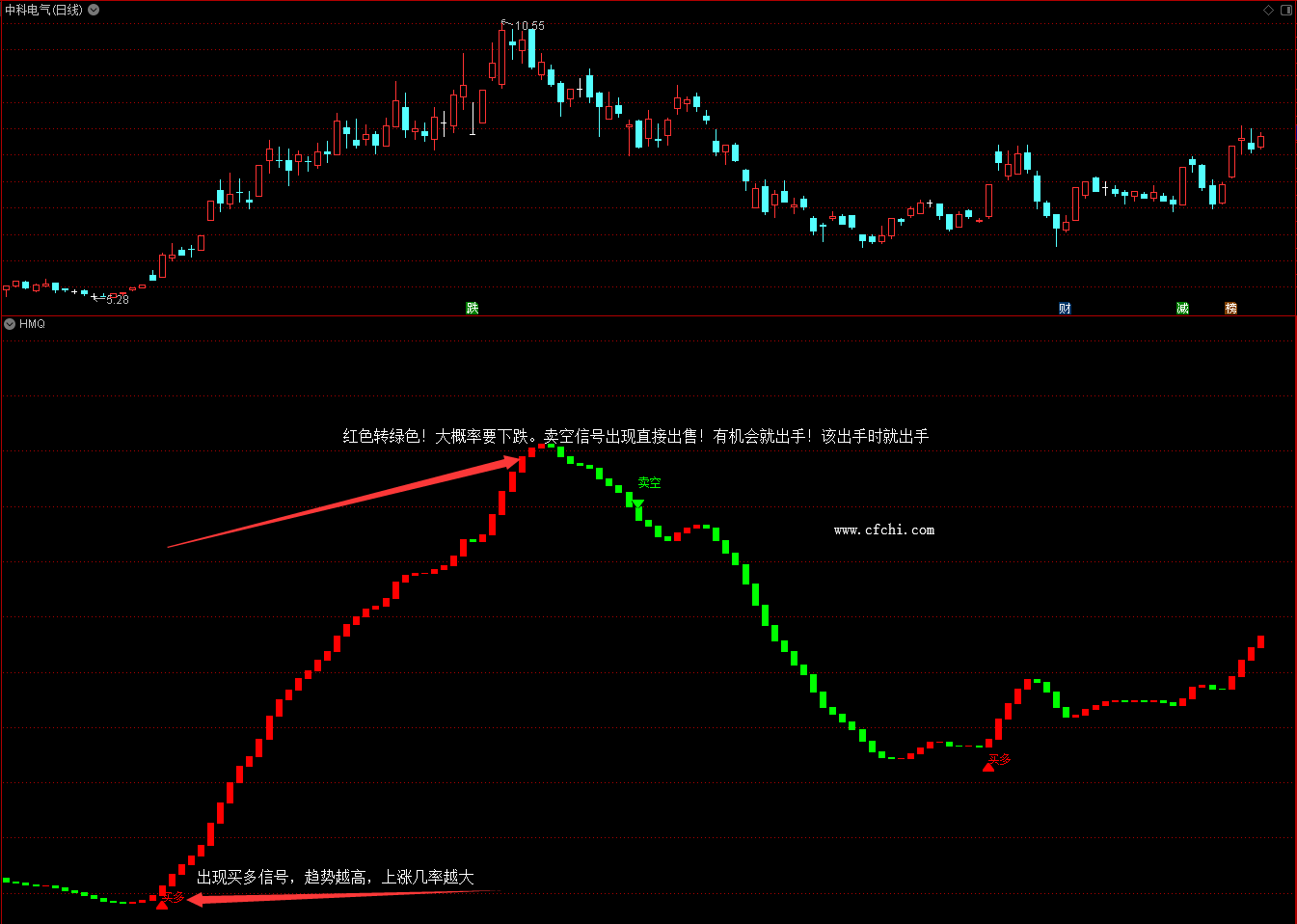 二、出现绿色,翻转强度大,考虑出手。一般红色转绿色之后,股票之后极大概率是下降的,翻转强度越大,下跌程度越大。