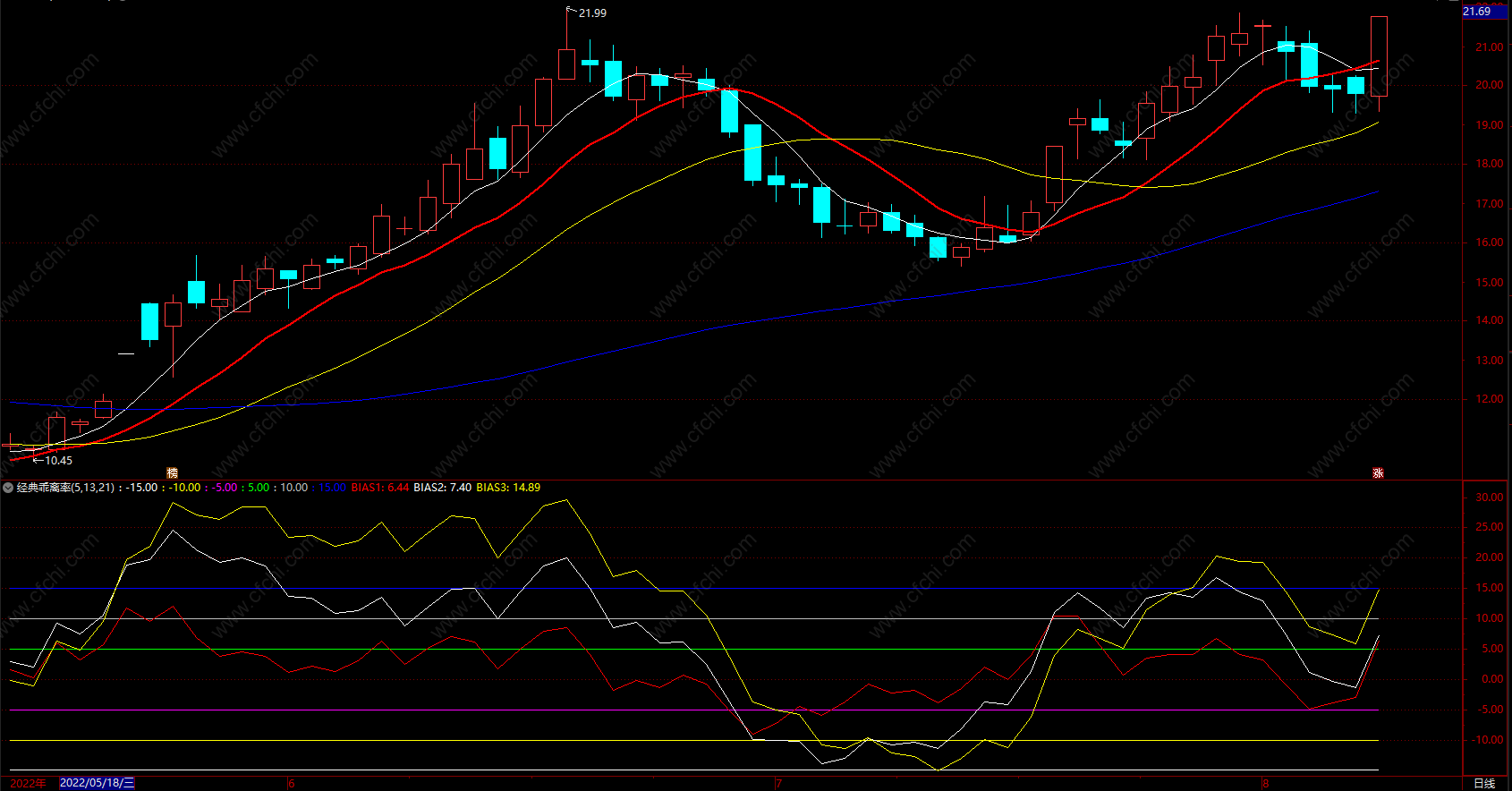 3):5bias不仅在暴涨暴跌行情能判明市场,也能在盘升或盘跌行情中导航。