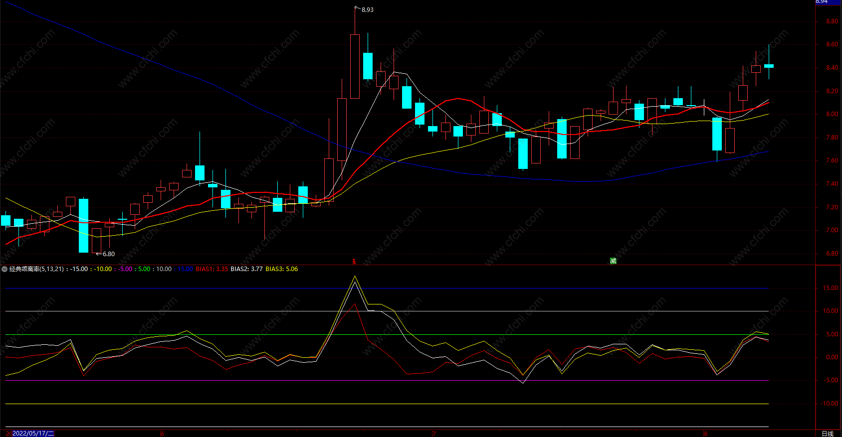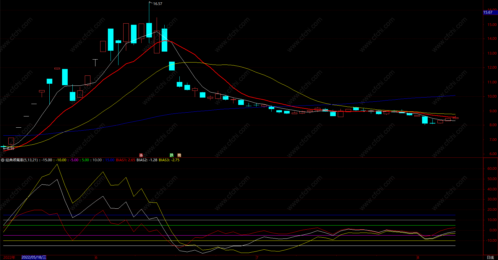 2):对个股来说:强势股(并非指庄家股),5bias达到10,逢高派发。达到-10,逢低吸纳。