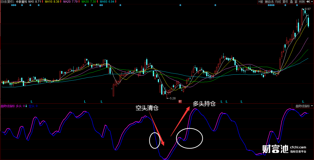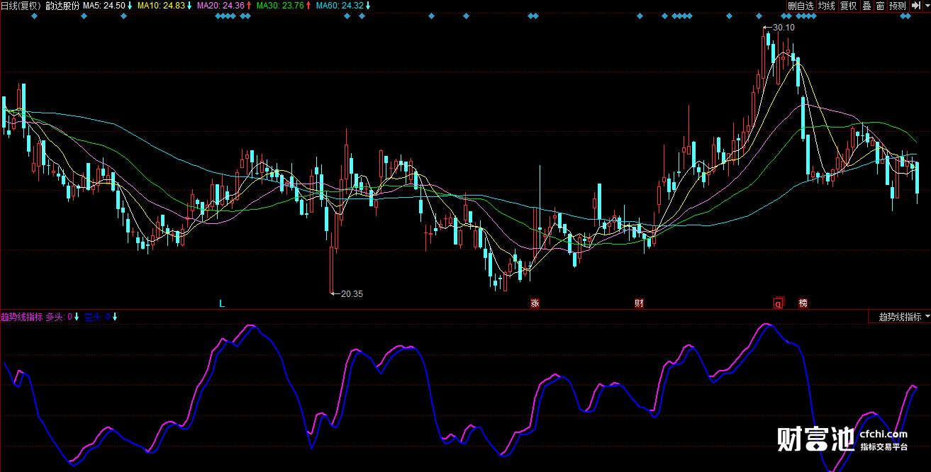 (交易利器精准多头多空趋势线 同花顺指标 幅图 未加密 无未来)