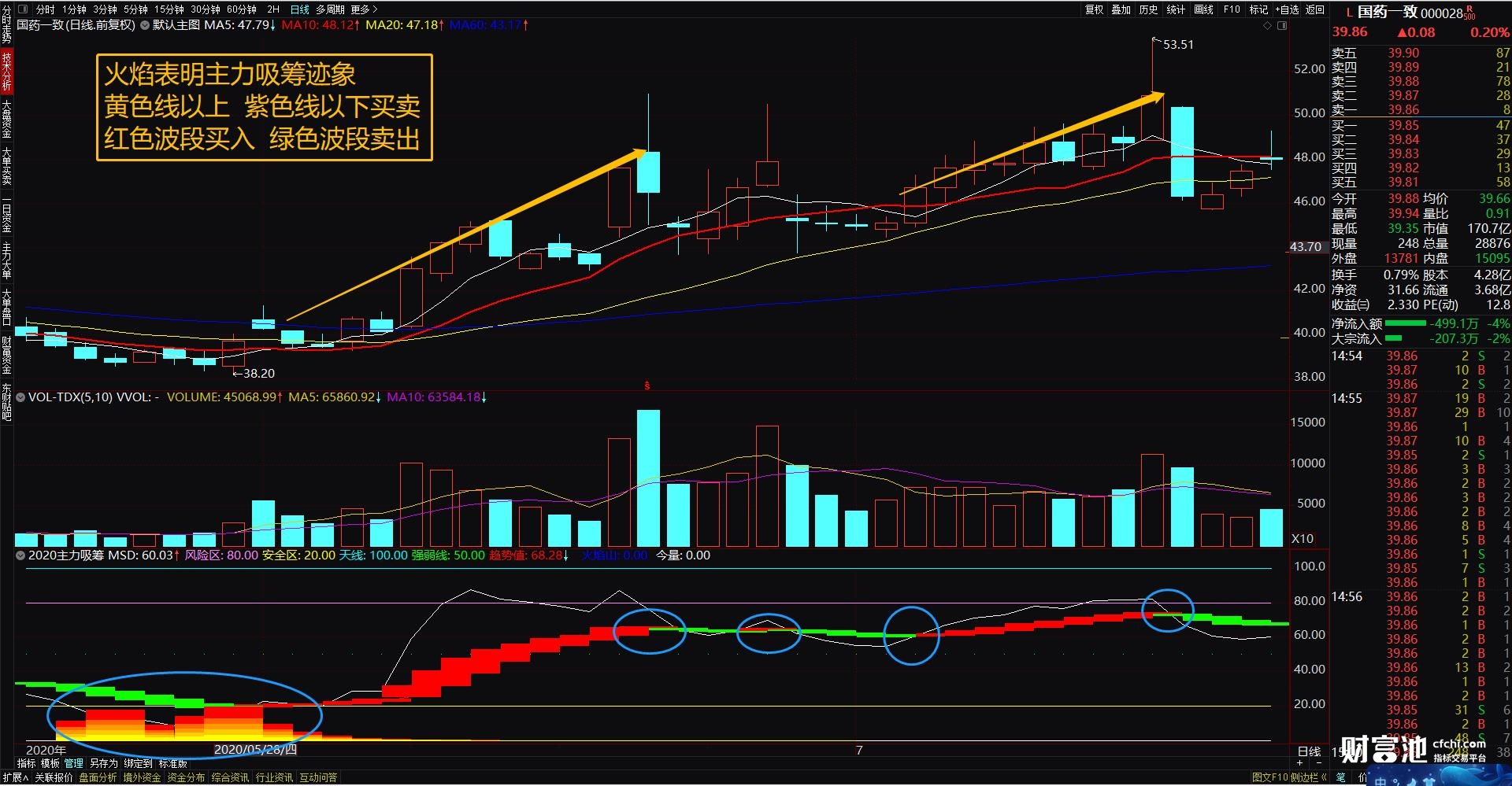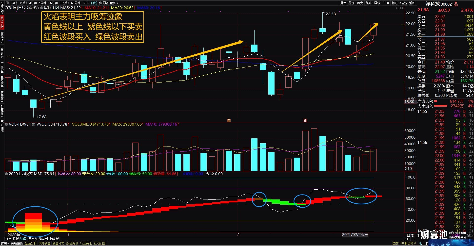 通达信金色K线持股,蓝色K线持币 ;下跌通道抢反弹,最好是金K线开始出现和道线红色