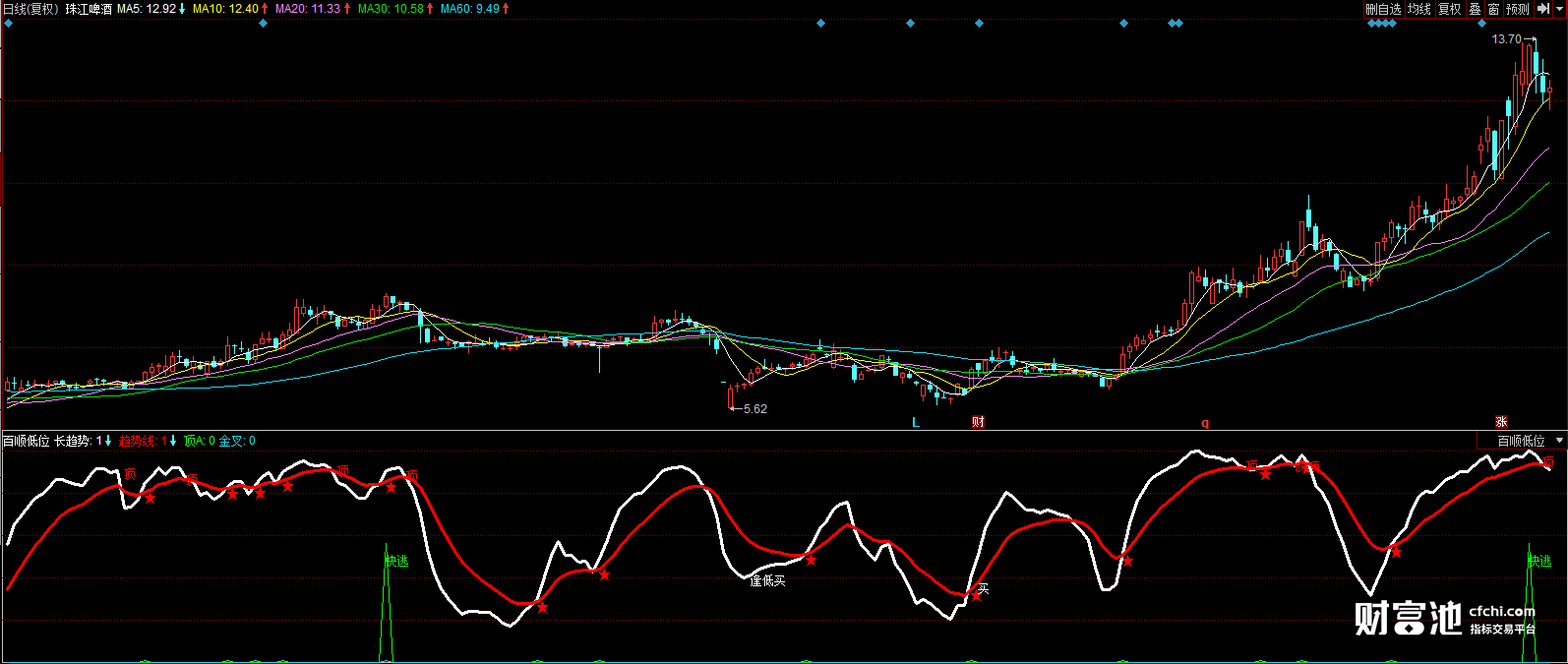 (抄底逃顶低位红三兵同花顺指标 未加密)