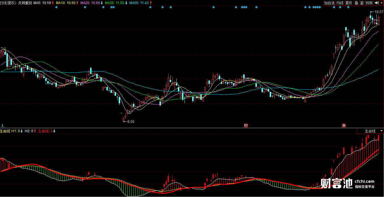 财富池指标公式网(www.cfchi.com)提醒您:指标公式是通过数学逻辑角度编写而来,仅是股票分析环节中的一个辅助工具,对股票选股效率和分析便捷上起到一定的作用,股市是具有不确定性和不可预测性的,请正常对待和使用指标公式!