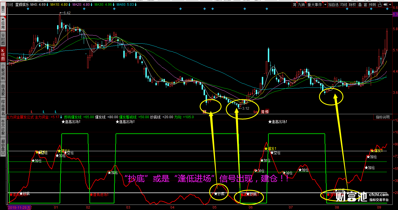 当出现“逢低进场”信号时,可以开始留意买入该股票,当出现“抄底”信号的时候是建仓的好机会!