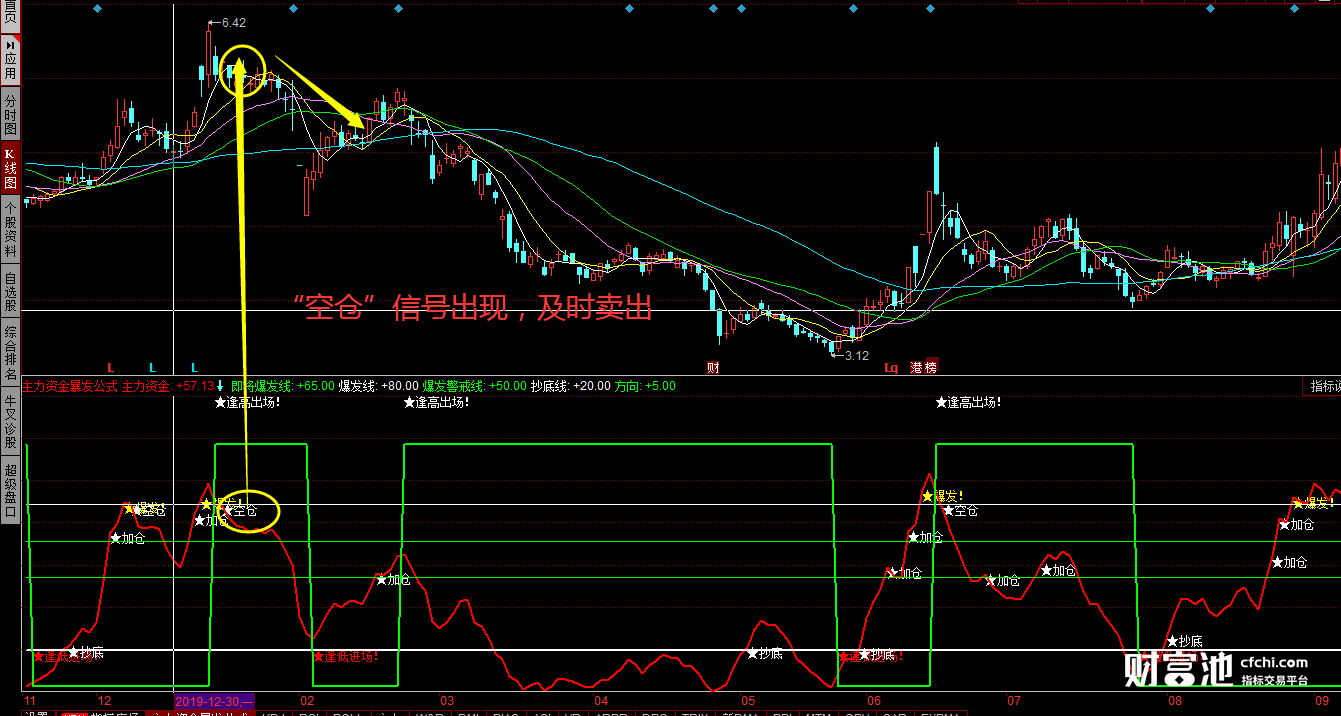 当出现“爆发”信号时就要留意,股票可能已经要到最高价位点了,注意要看准时机卖出,当出现“空仓”信号的时候,一定要及时卖出了!