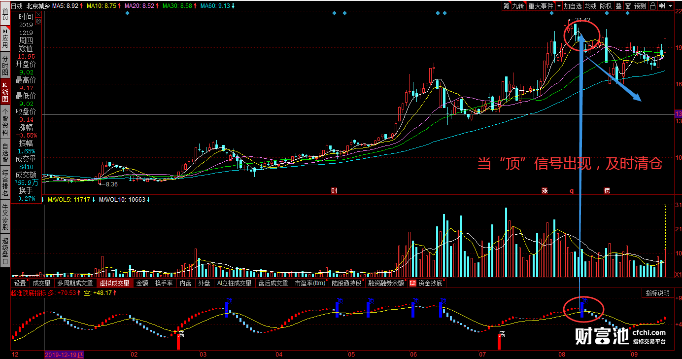 卖出点:当出现蓝色的“顶”信号是,是股价的最高临界点,要注意及时卖出。