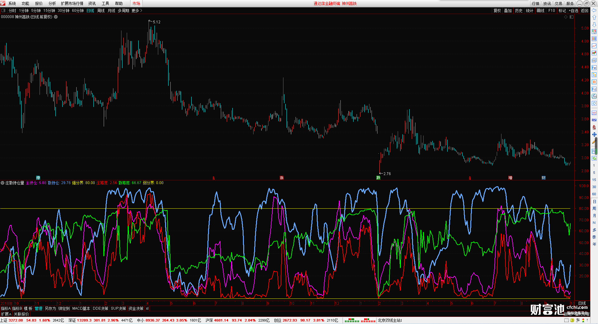 (庄散持仓量 副图指标 无加密 无未来函数 无引用dll 筹码分析 持仓筹码)