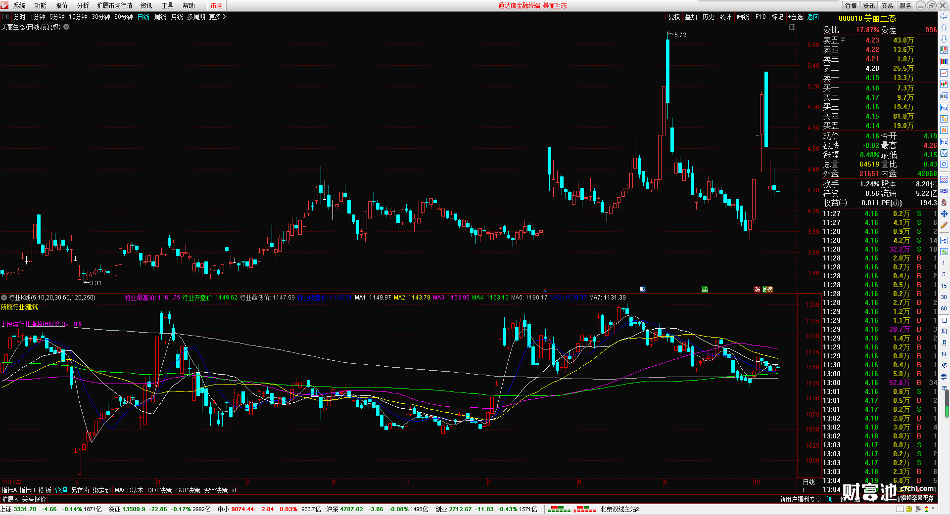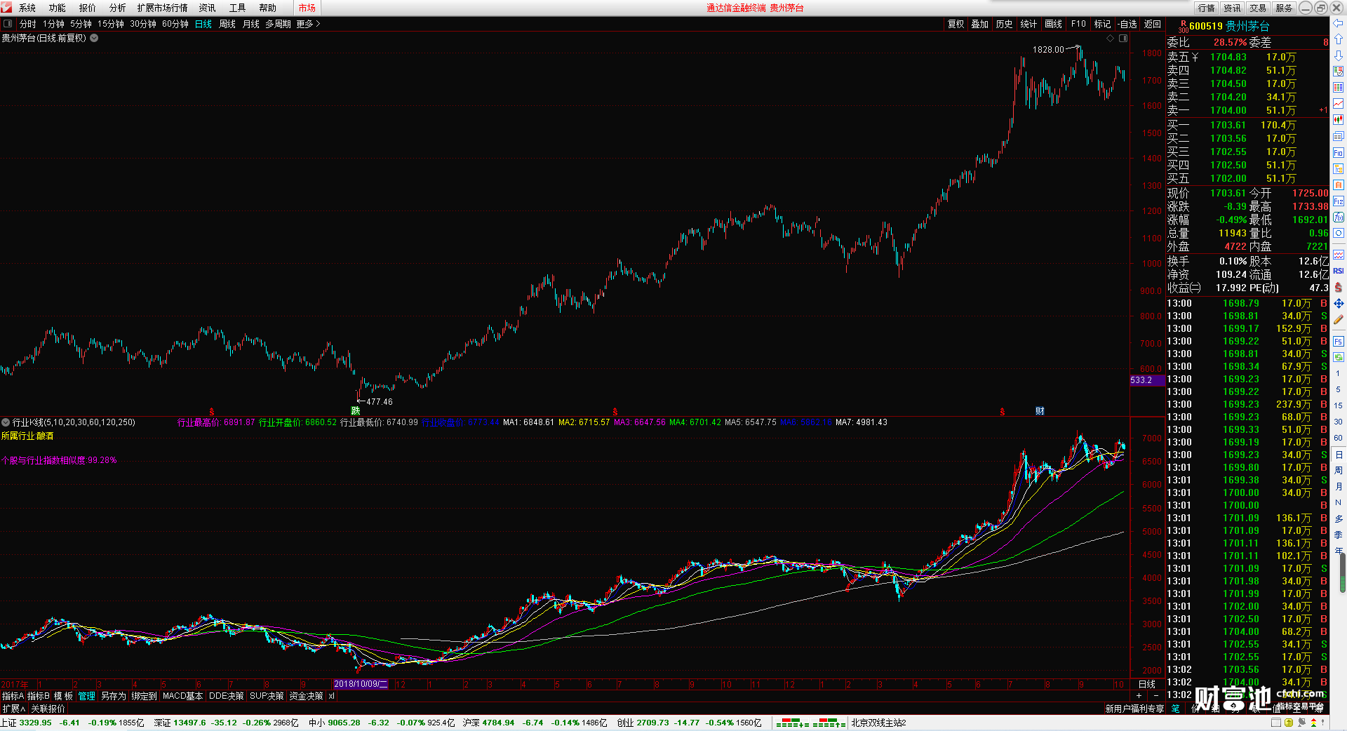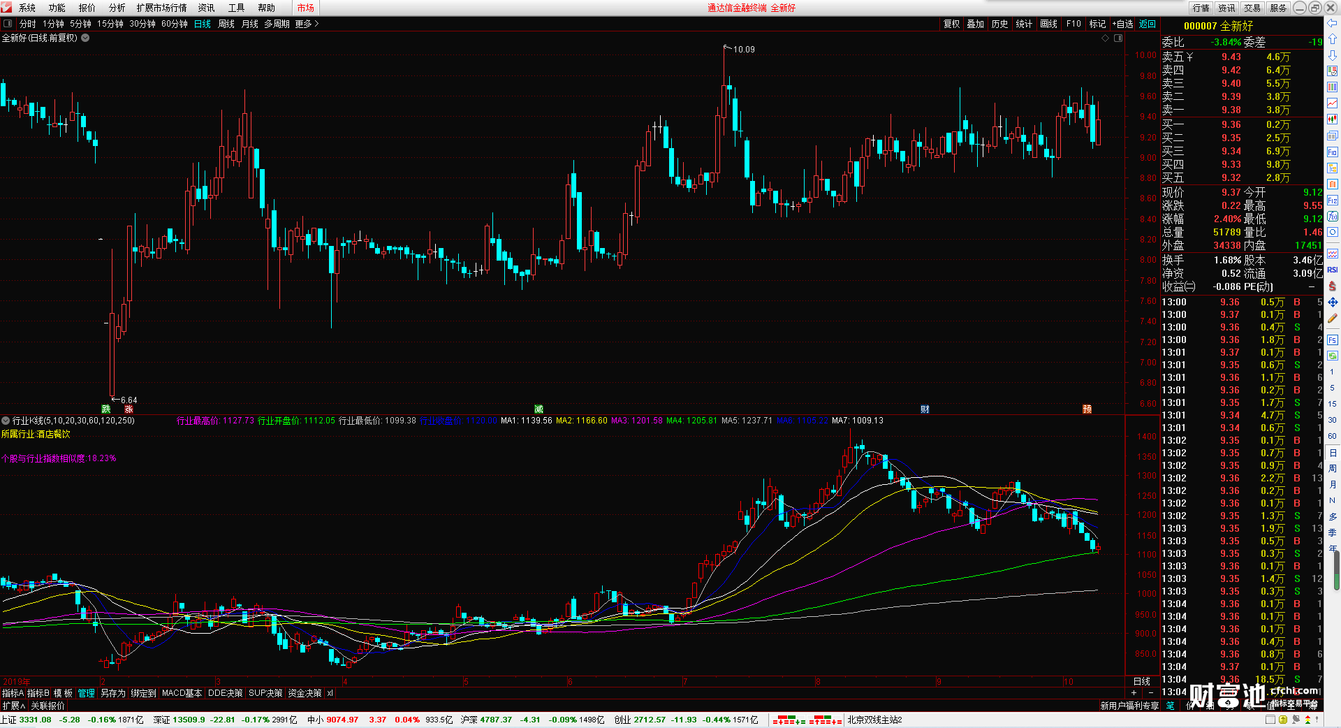 行业指数的最高价 开盘价 最低价 收盘价 还有7根可以自行设置的行业指数均线