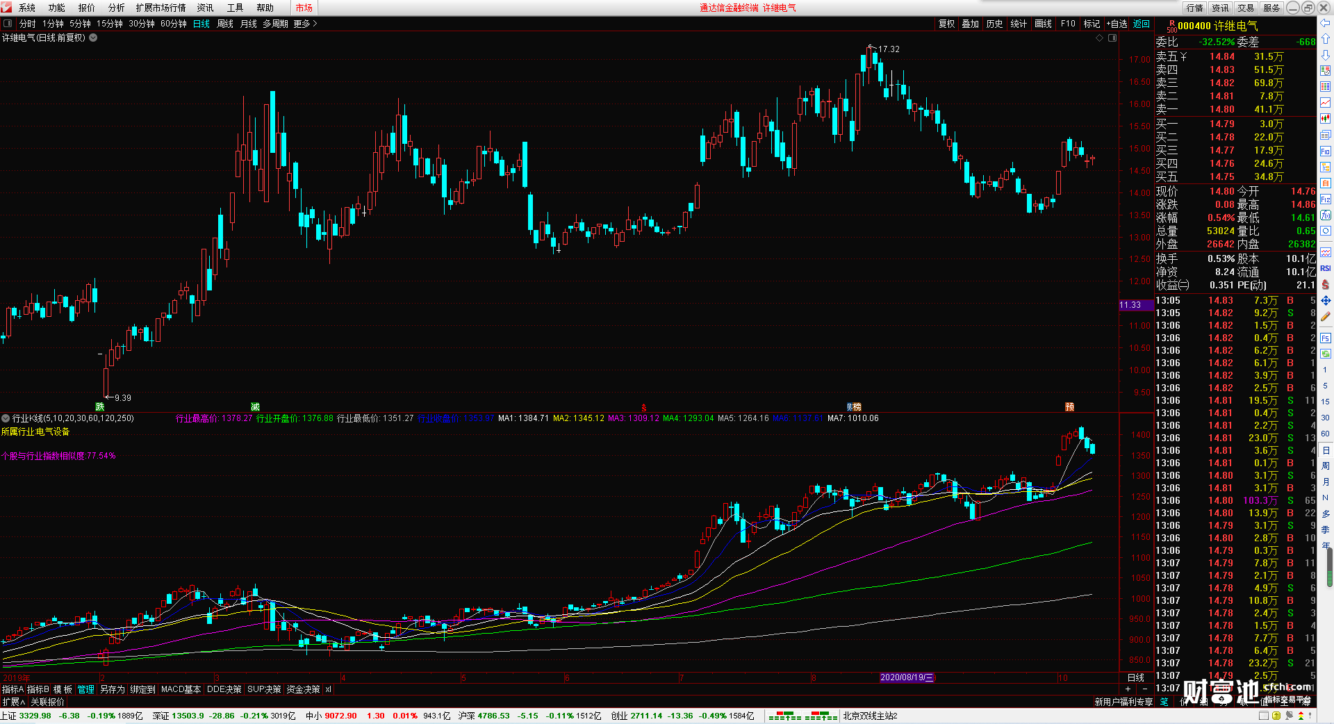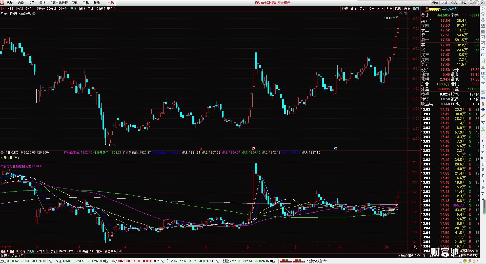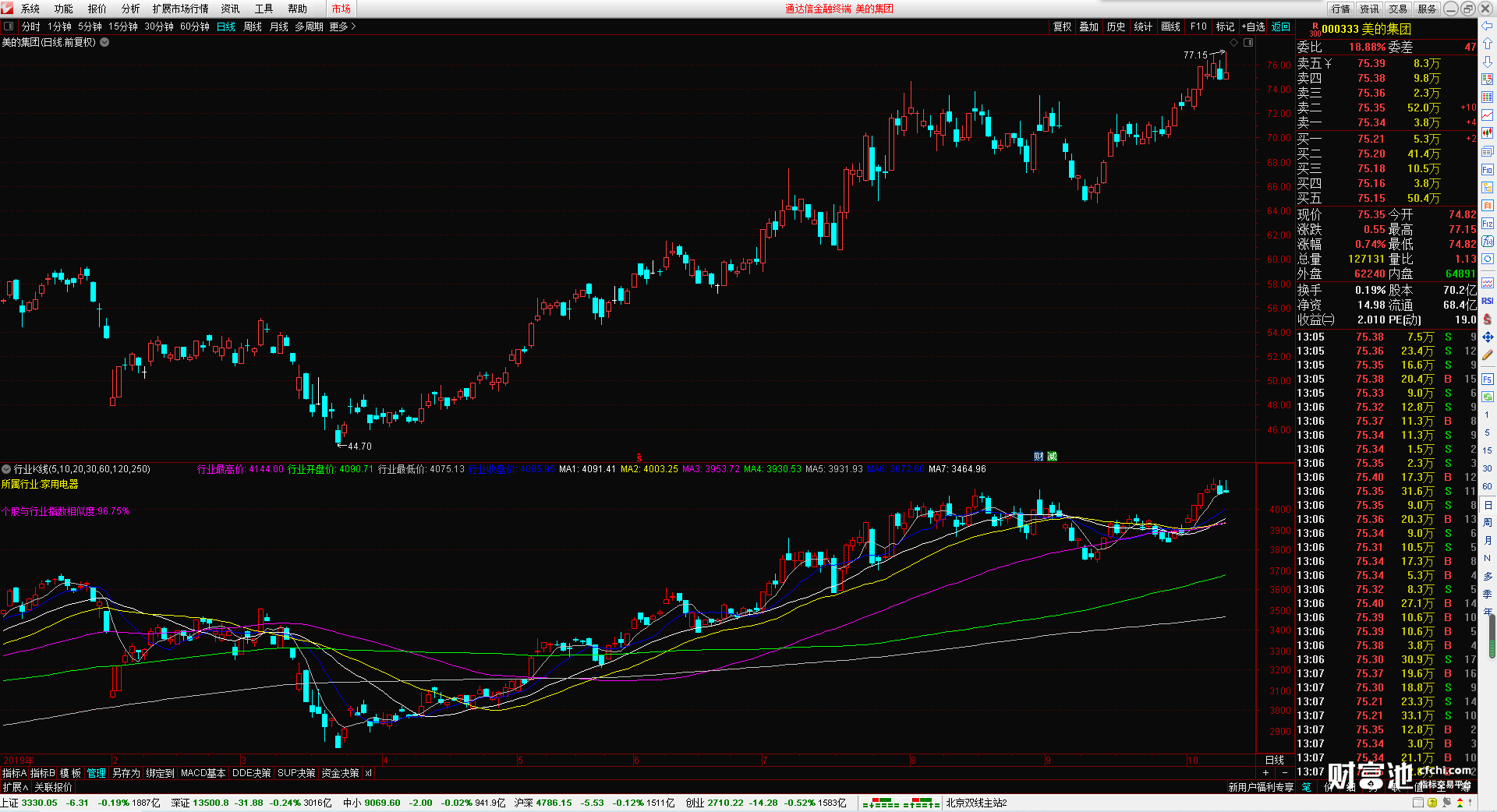 行业指数的最高价 开盘价 最低价 收盘价 还有7根可以自行设置的行业指数均线