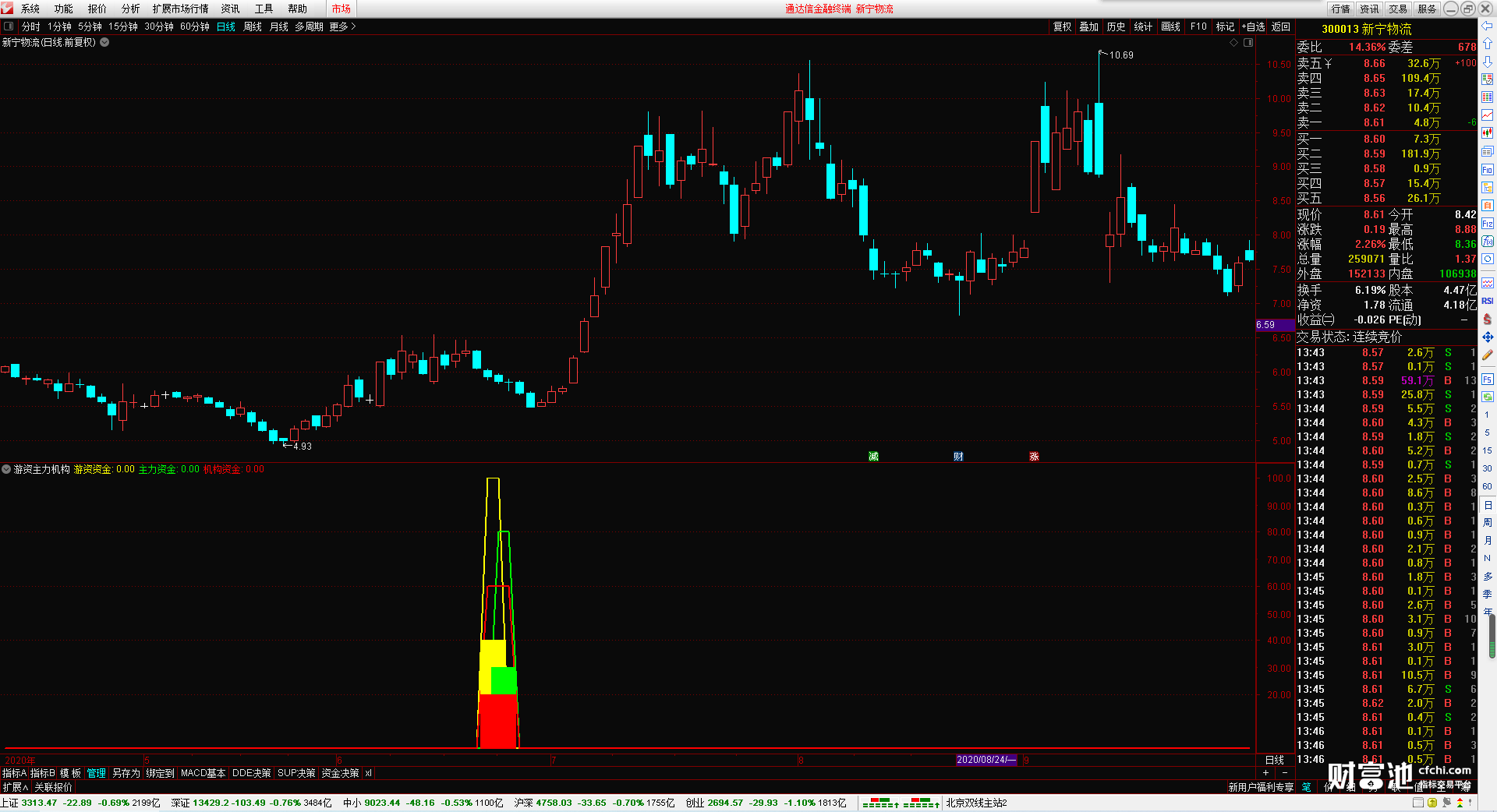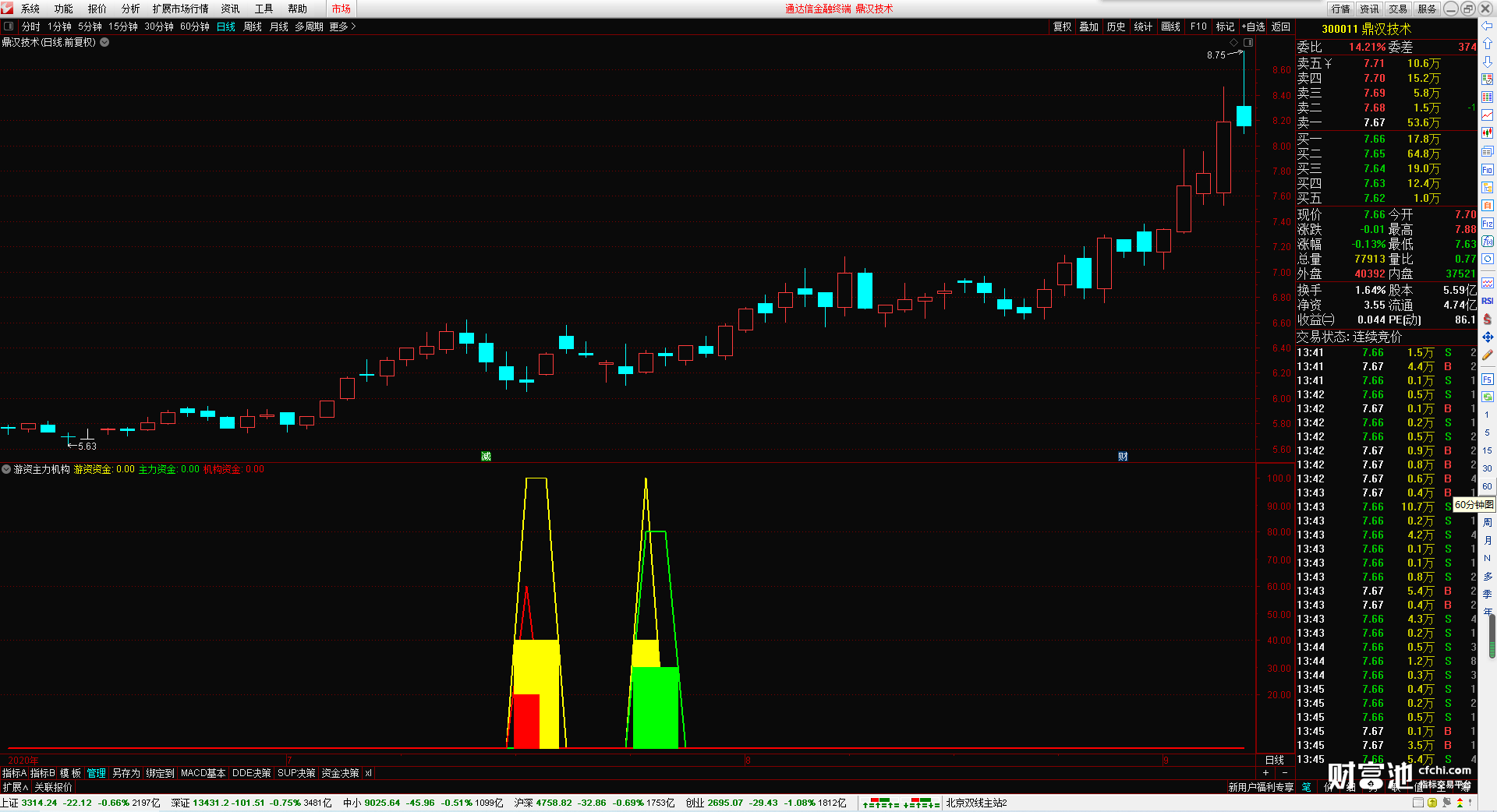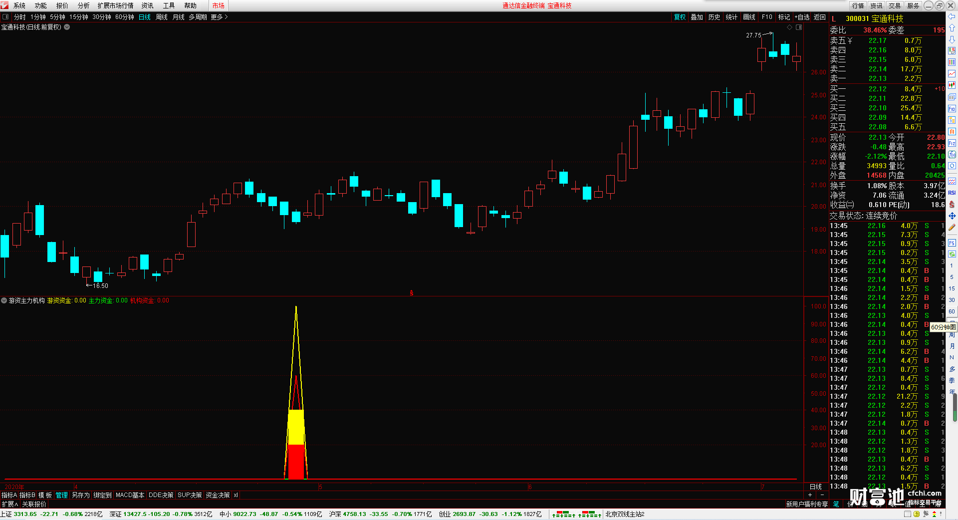 通信达【主游资金流入+黄金眼】套装指标1主图2幅图3选股专为捕获主力游资资金进出设计的套装指标