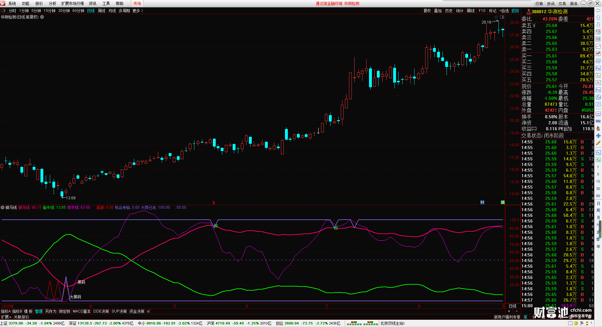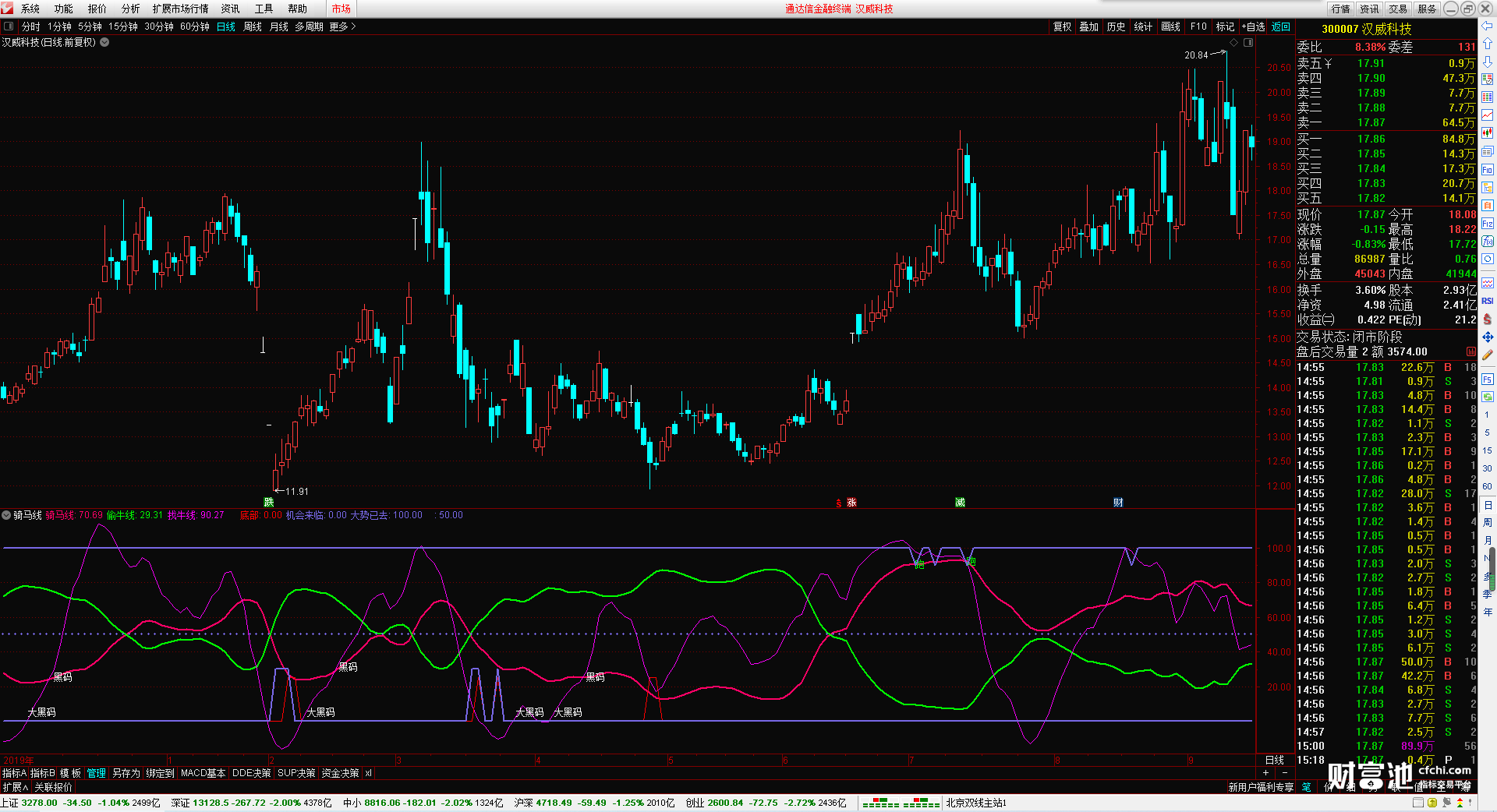 (骑马线 无加密 无未来函数 无引用dll 大黑马提示 底部提示)