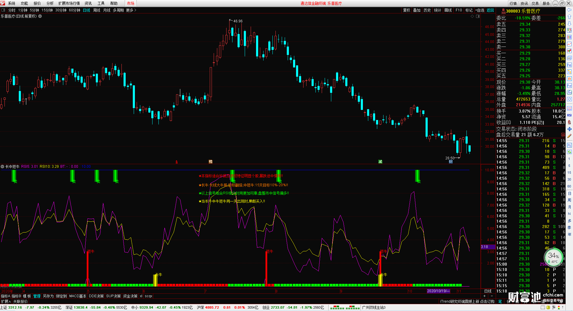 (长中短牛 无加密 无引用dll 副图指标 波段交易)