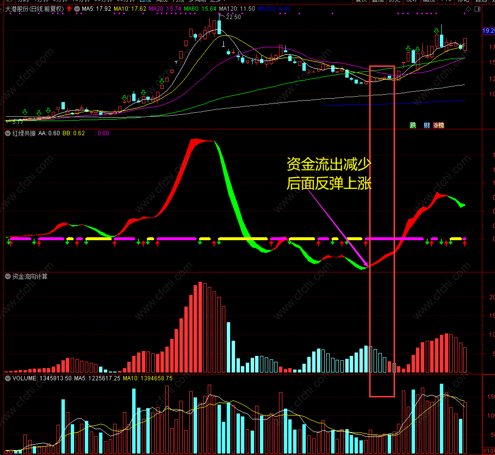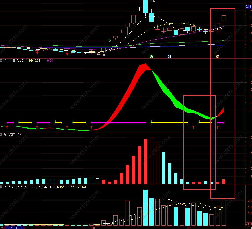 更多资金流向指标与红绿共振趋势股票指标公式案例截图: