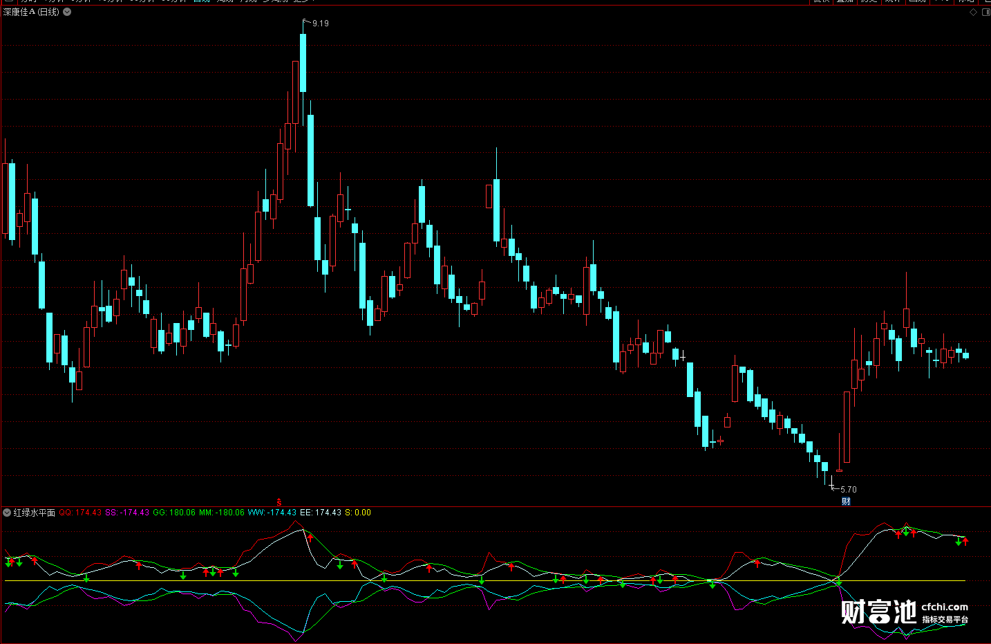 从图中我们可以看出股票各种线的走向,新手根据红绿箭头即可参与买卖