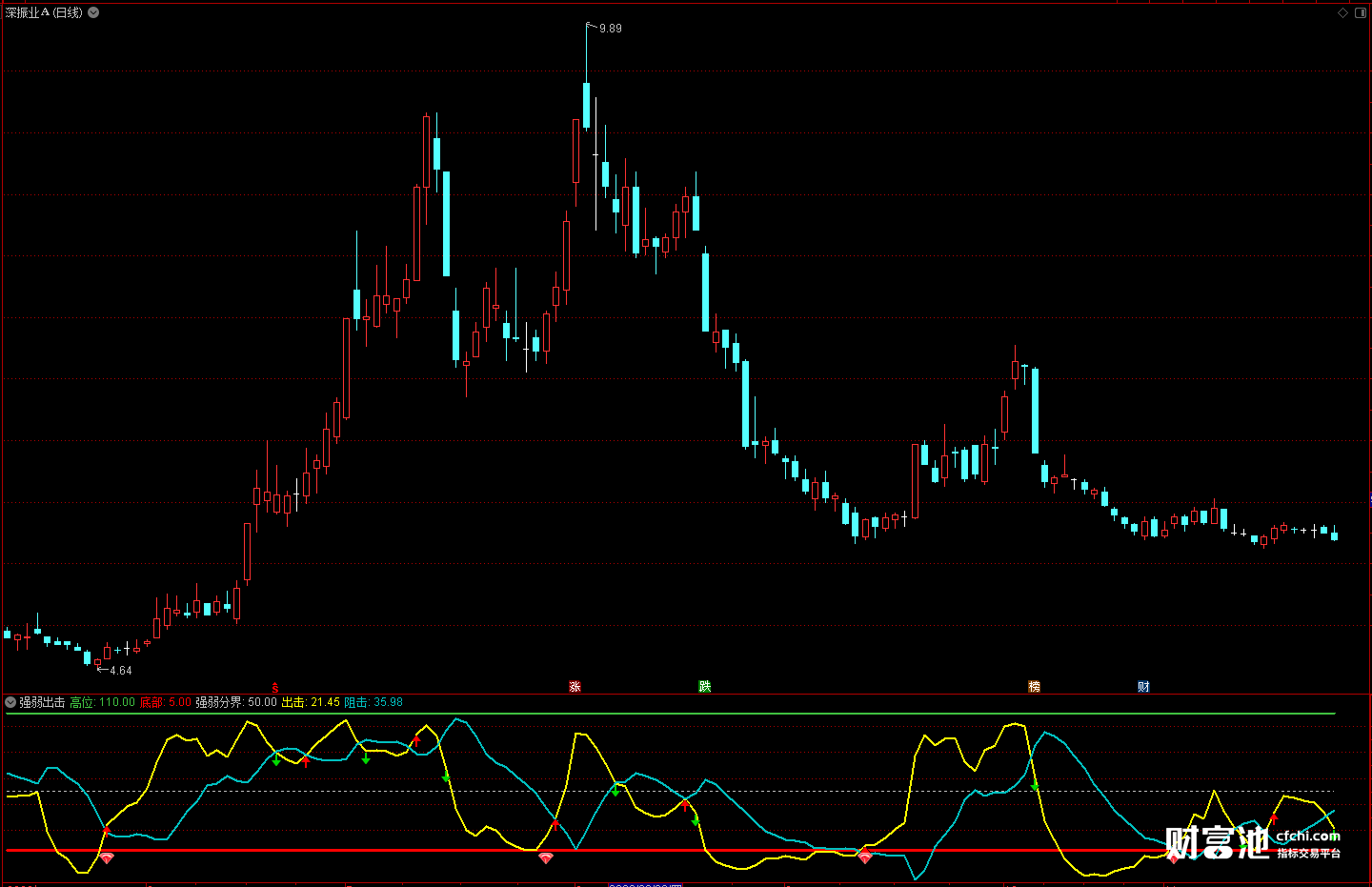 从图中我们可以看出,中间白色虚线是强弱分界线,以上表示走强,以下为走弱;
