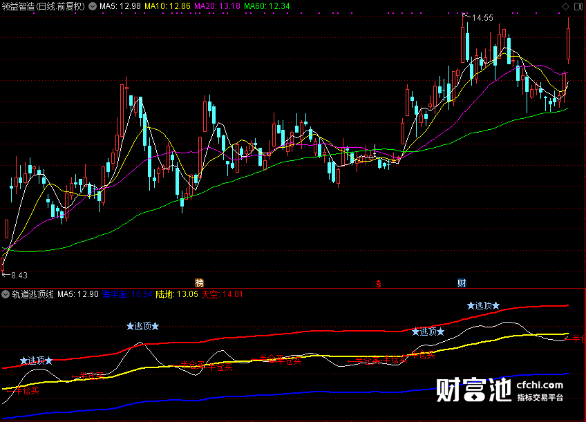 (「翔博精选指标」轨道逃顶线(通达信公式 副图 源码 测试图))