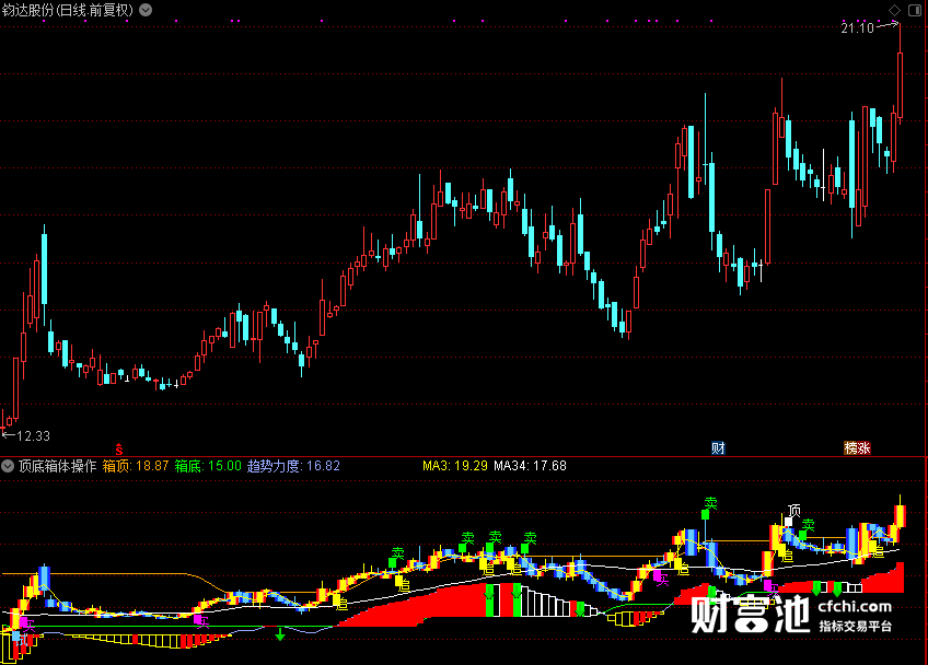 (「翔博精选指标」顶底箱体操作指标(通达信公式 副图 源码 测试图))