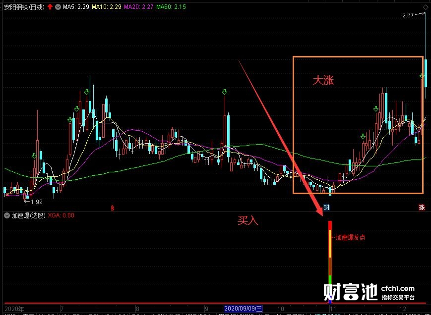 (通达信公式副图,90%准确率,短线买点提示,加速爆发公式)