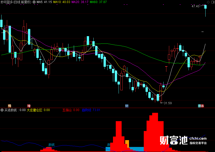 财富池指标公式网(www.cfchi.com)提醒您:指标公式是通过数学逻辑角度编写而来,仅是股票分析环节中的一个辅助工具,对股票选股效率和分析便捷上起到一定的作用,股市是具有不确定性和不可预测性的,请正常对待和使用指标公式!