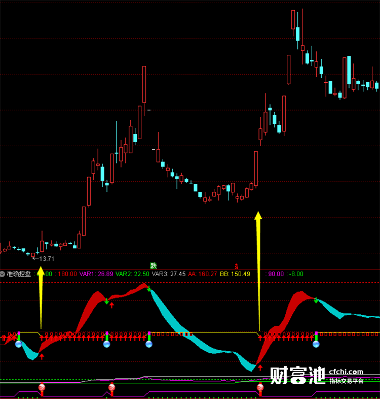财富池指标公式网(www.cfchi.com)提醒您:指标公式是通过数学逻辑角度编写而来,仅是股票分析环节中的一个辅助工具,对股票选股效率和分析便捷上起到一定的作用,股市是具有不确定性和不可预测性的,请正常对待和使用指标公式!