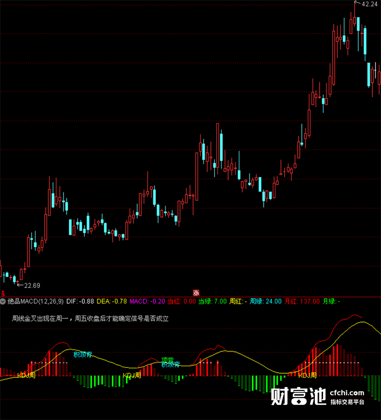财富池指标公式网(www.cfchi.com)提醒您:指标公式是通过数学逻辑角度编写而来,仅是股票分析环节中的一个辅助工具,对股票选股效率和分析便捷上起到一定的作用,股市是具有不确定性和不可预测性的,请正常对待和使用指标公式!
