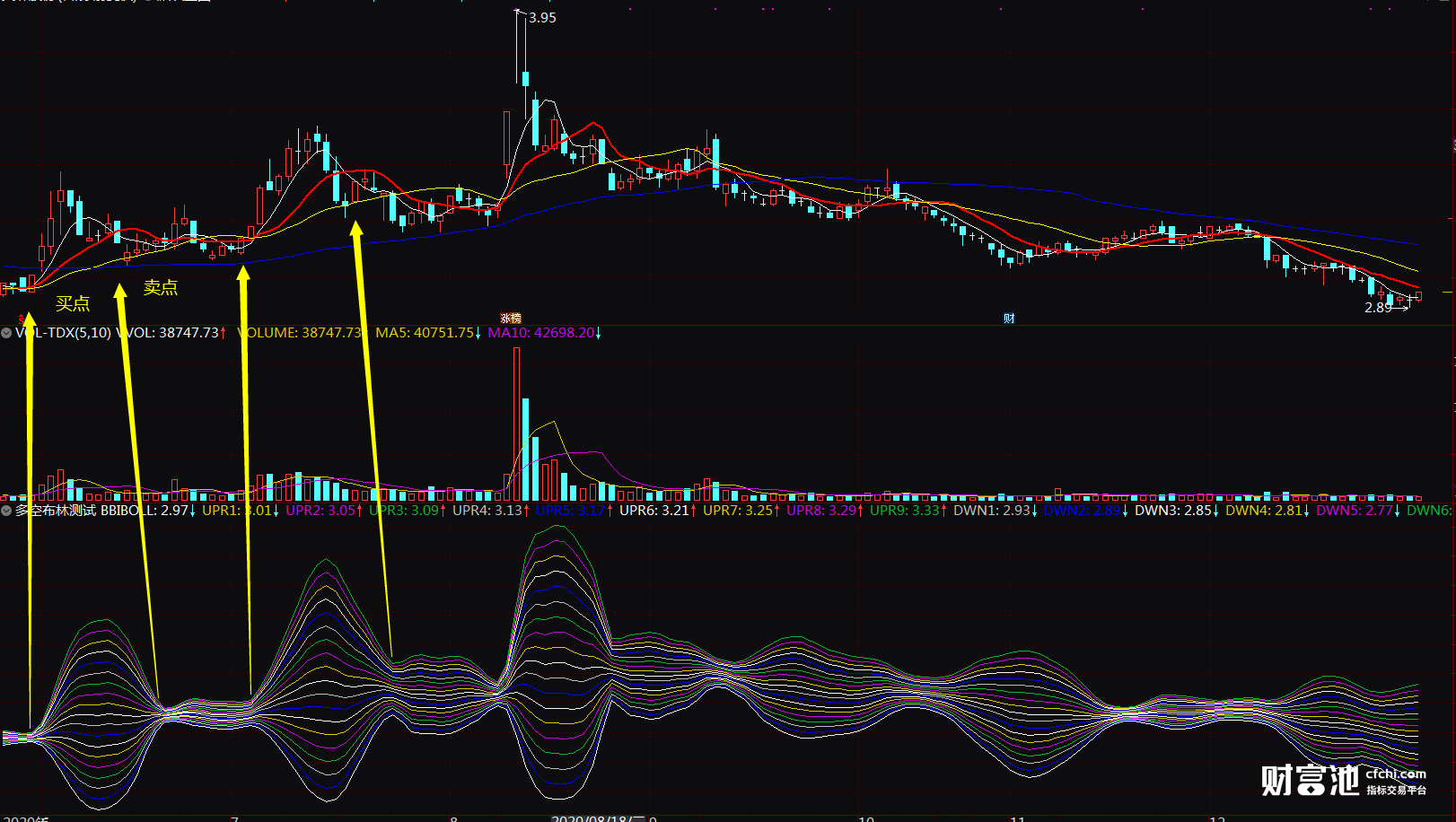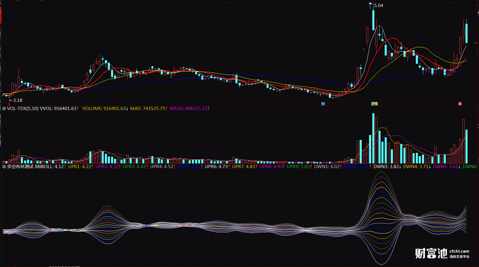 布林通道宽度指标 让BOLL布林开口缩口 通达信选股指标 副图
