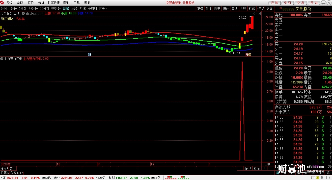 本指标的打板技巧,不是让您追涨停板,追涨停板的风险是相当大的。本指标的买点是在开在两三个点以内,然后主力又迅速拉涨的状态,如果及时跟上,当天可以获利四到五个点的利。