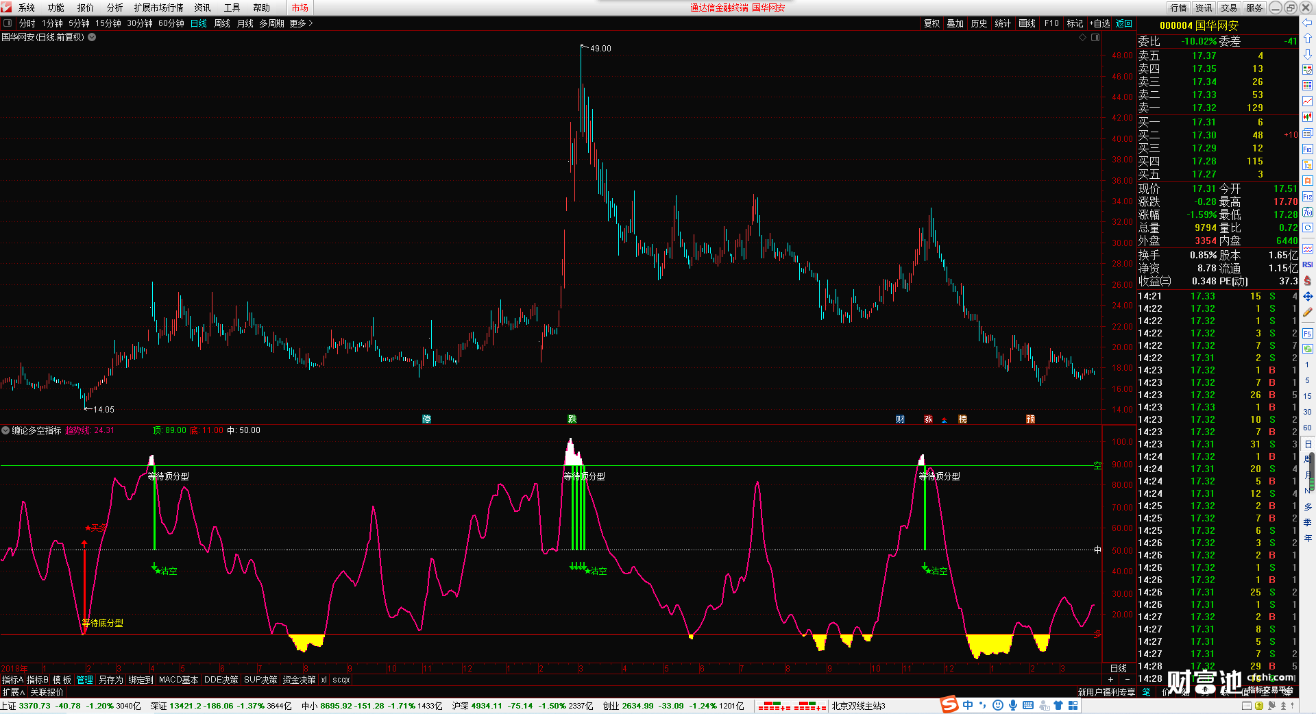 (缠论多空指标 无加密 无引用dll 无未来函数 )