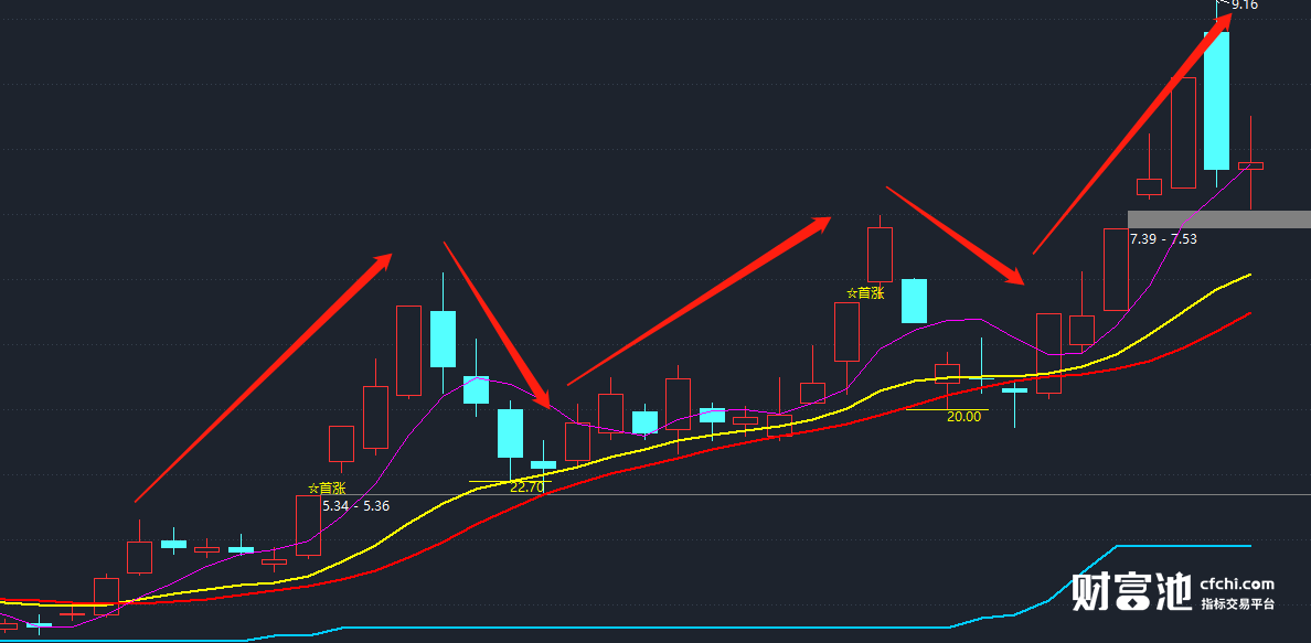 1)第一波上攻往往能够凸显该股的“强势”,当第一波上攻有三个以上涨停时,说明该股主力实力较强(强庄),经过上攻过程的充分换手,市场人气很高。