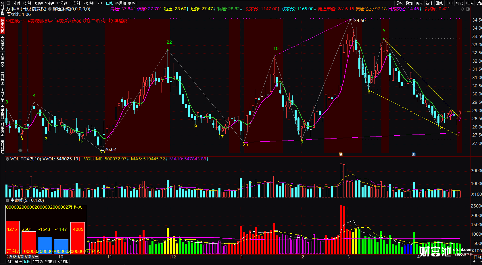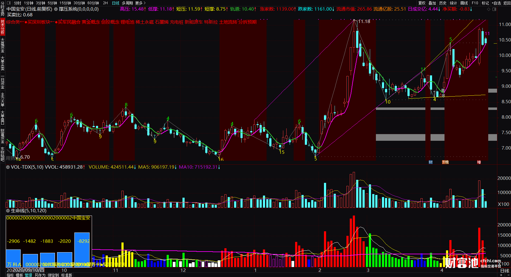 高成功率通达信持股持币指标买卖区间+ 生命线主图指标/ 副图指标源码 图示